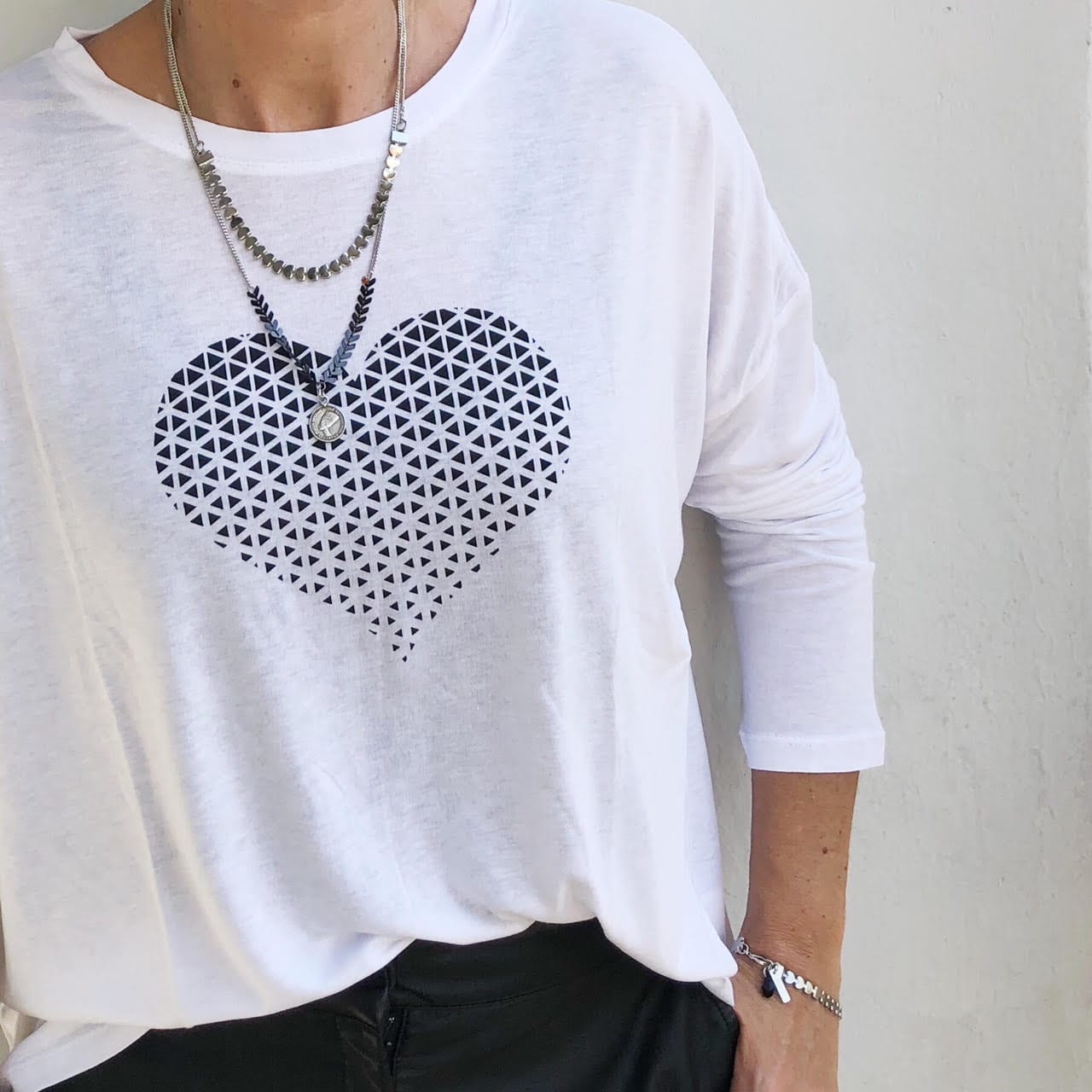 חוליות בצורת לבבות מופשטים מחוברות אחת לשניה ואל שרשרת עדינה
