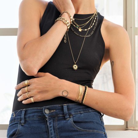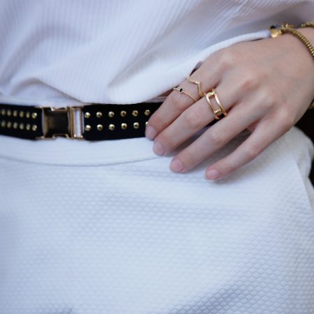 • טבעת פס משובץ זרקונים/יהלומים שחורים זהב מלא 14 קראט