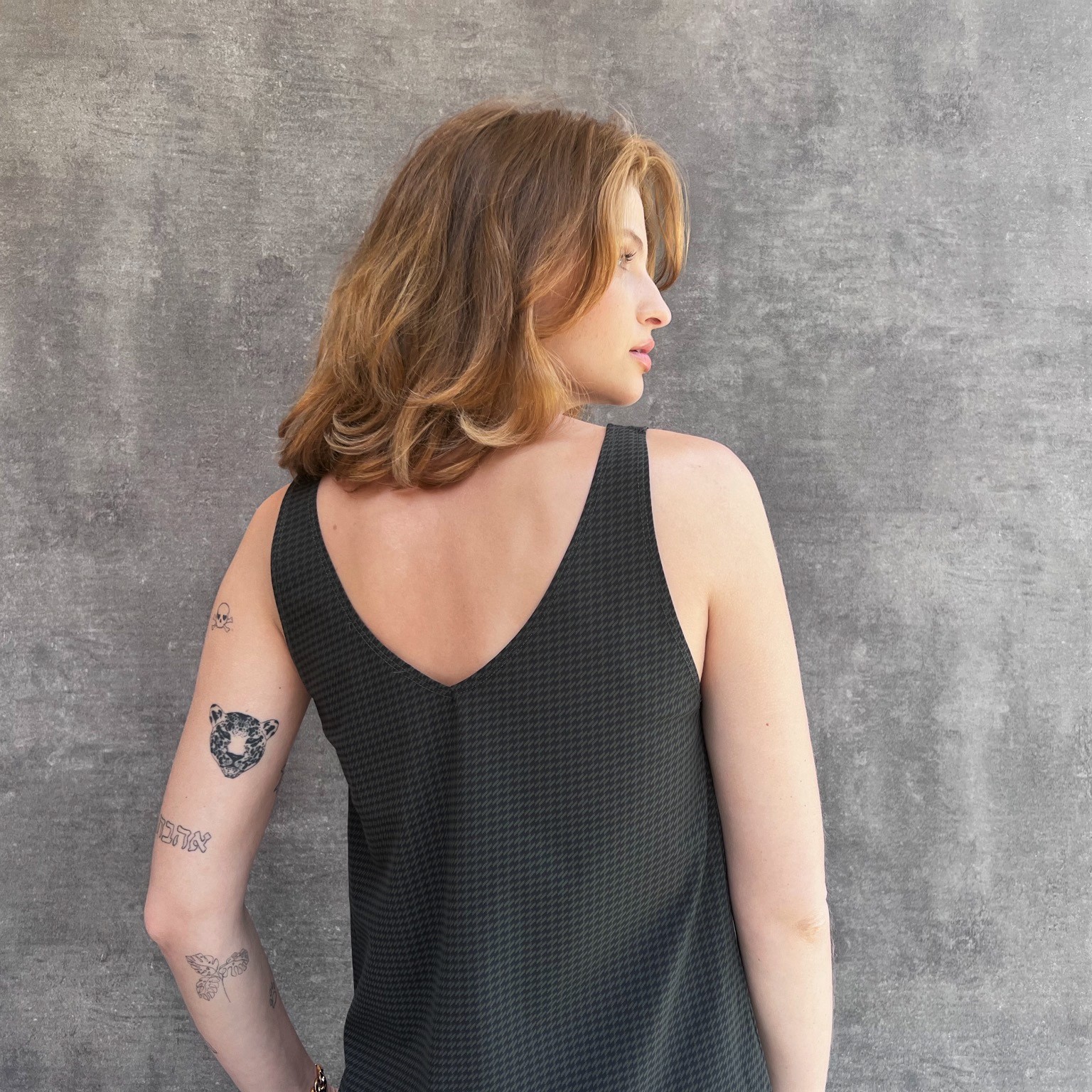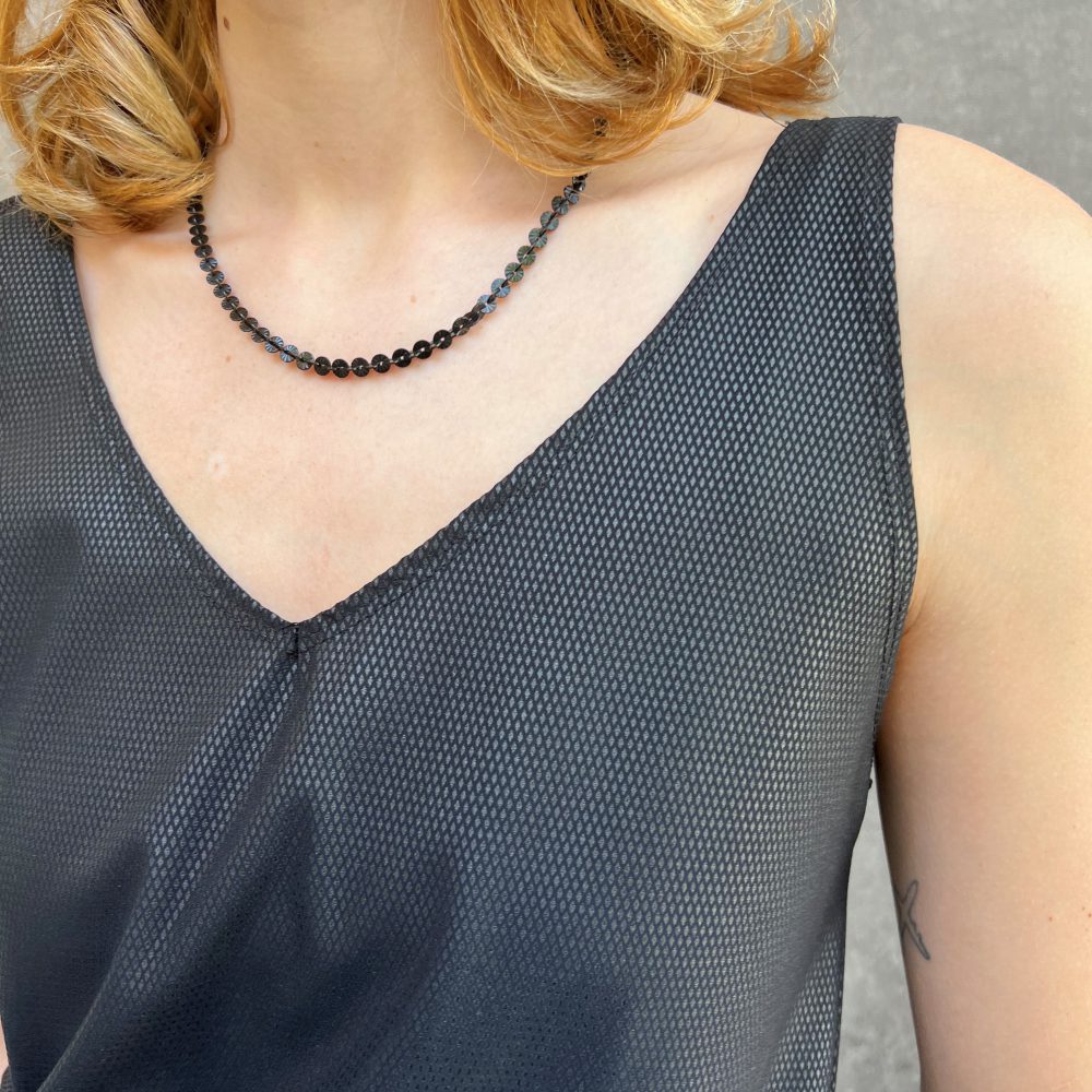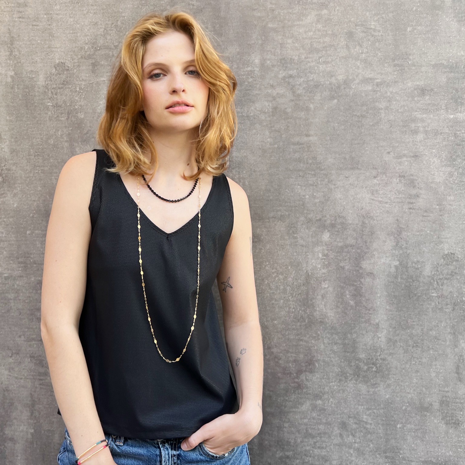 גופייה חתיכית ונינוחה עם צווארון נשפך מקולקציית “פעימה שניה”.