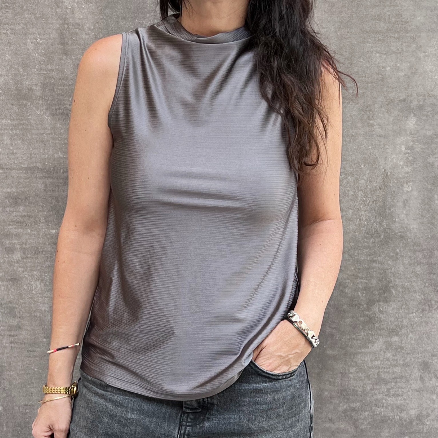 גופיה מהממת מבד דקיק ונעים עם הדפסים מקסימים עדינים וצווארון נשפך עדין שמעניק לה מראה אלגנטי ולבוש.