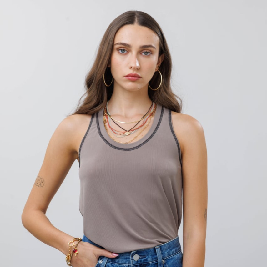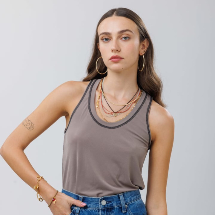 גופיה בגזרה מושלמת עכשיו בבדי ריב חדשים עם תפרים.