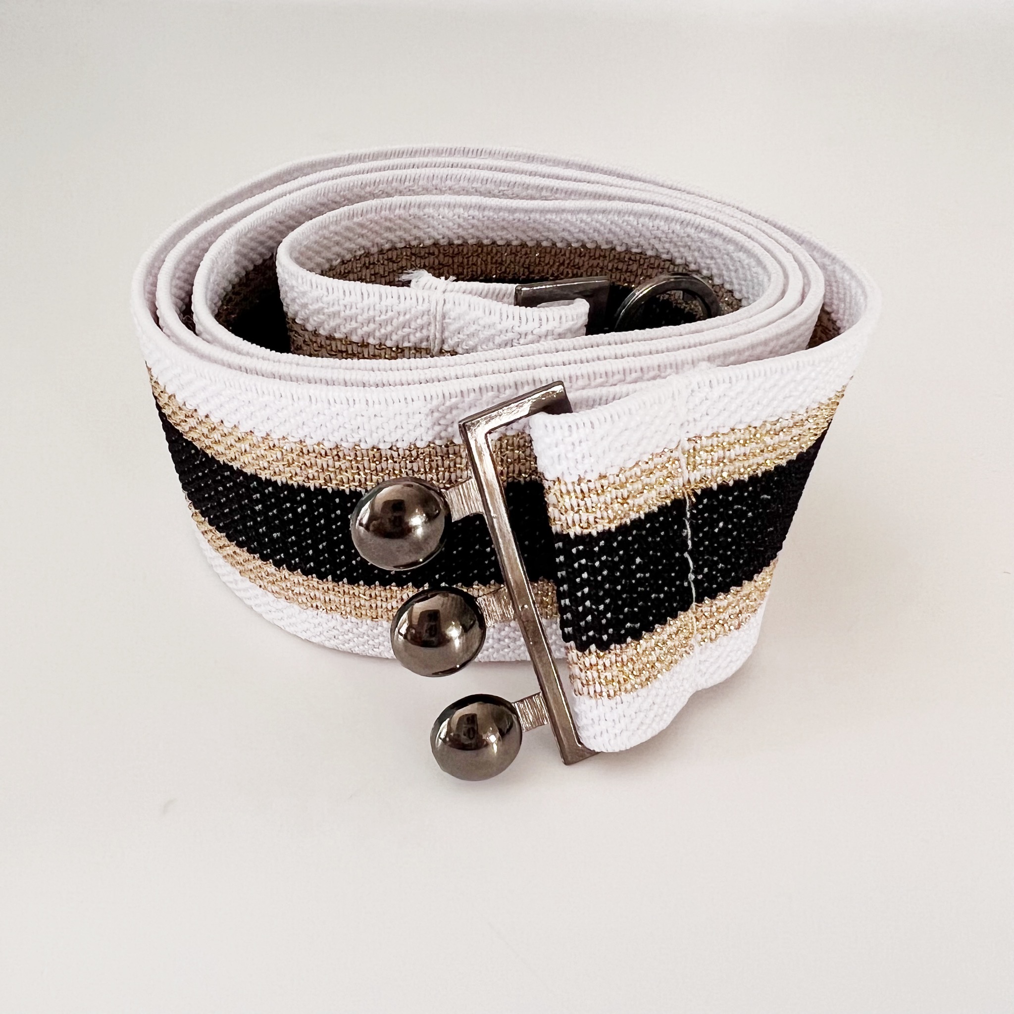 חגורה רחבה עשויה גומי איכותי עם אבזם מושלם בצבע מושחר.