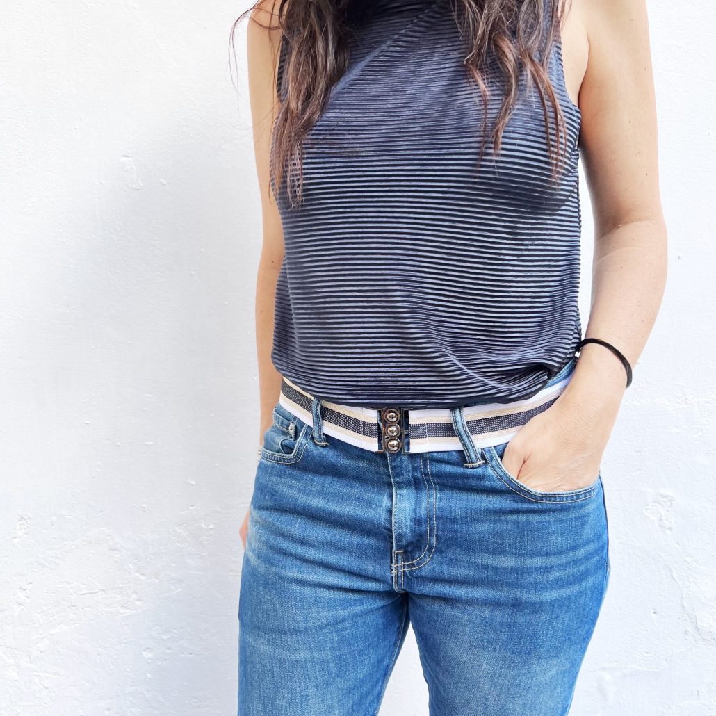 מתאימה ללבישה גבוה במותן או בתוך מכנסיים. (רוחב החגורה 4.7 ס”מ והיא נכנסת ללולאות של המכנסיים)