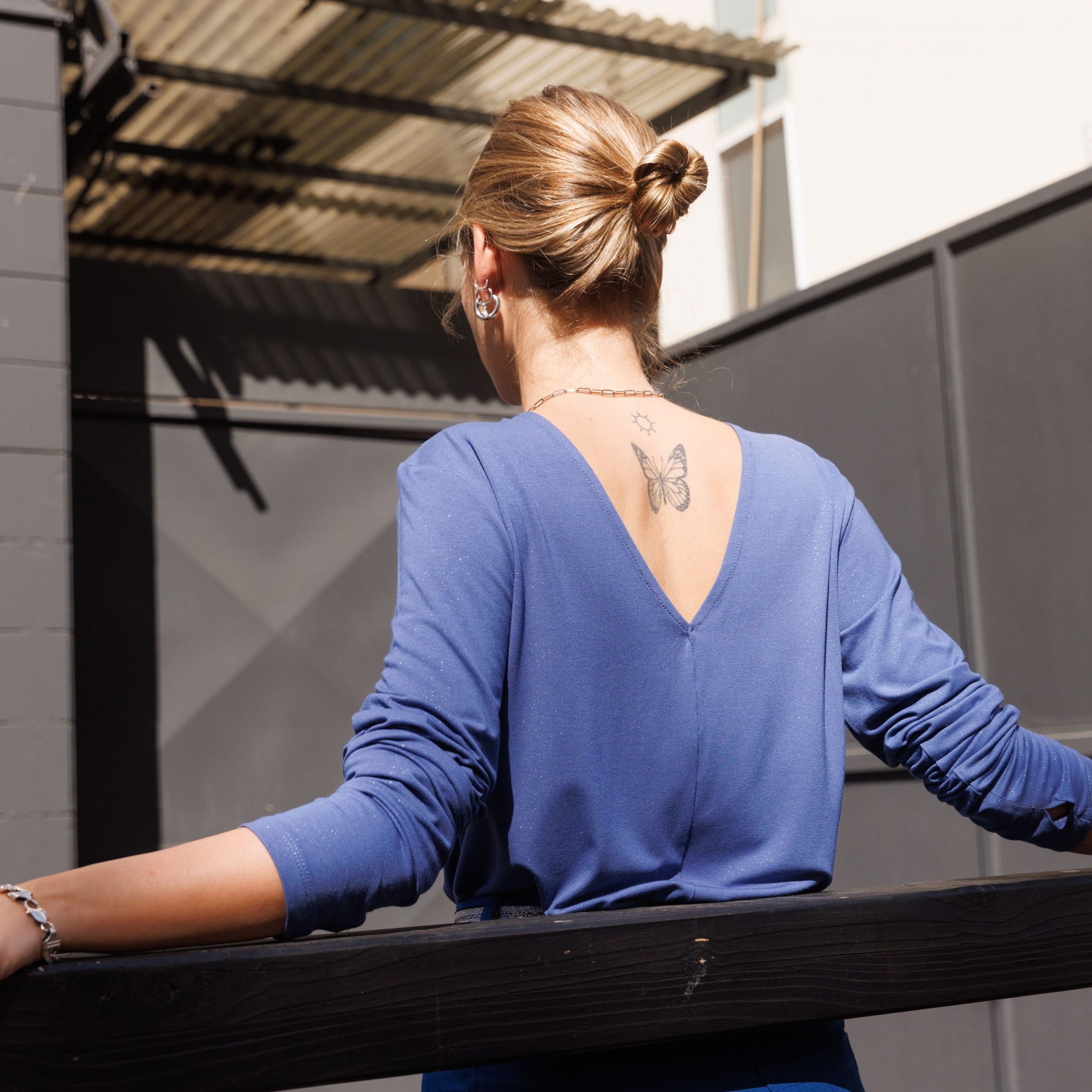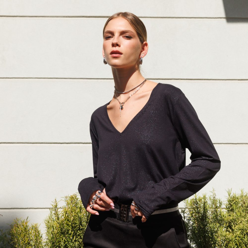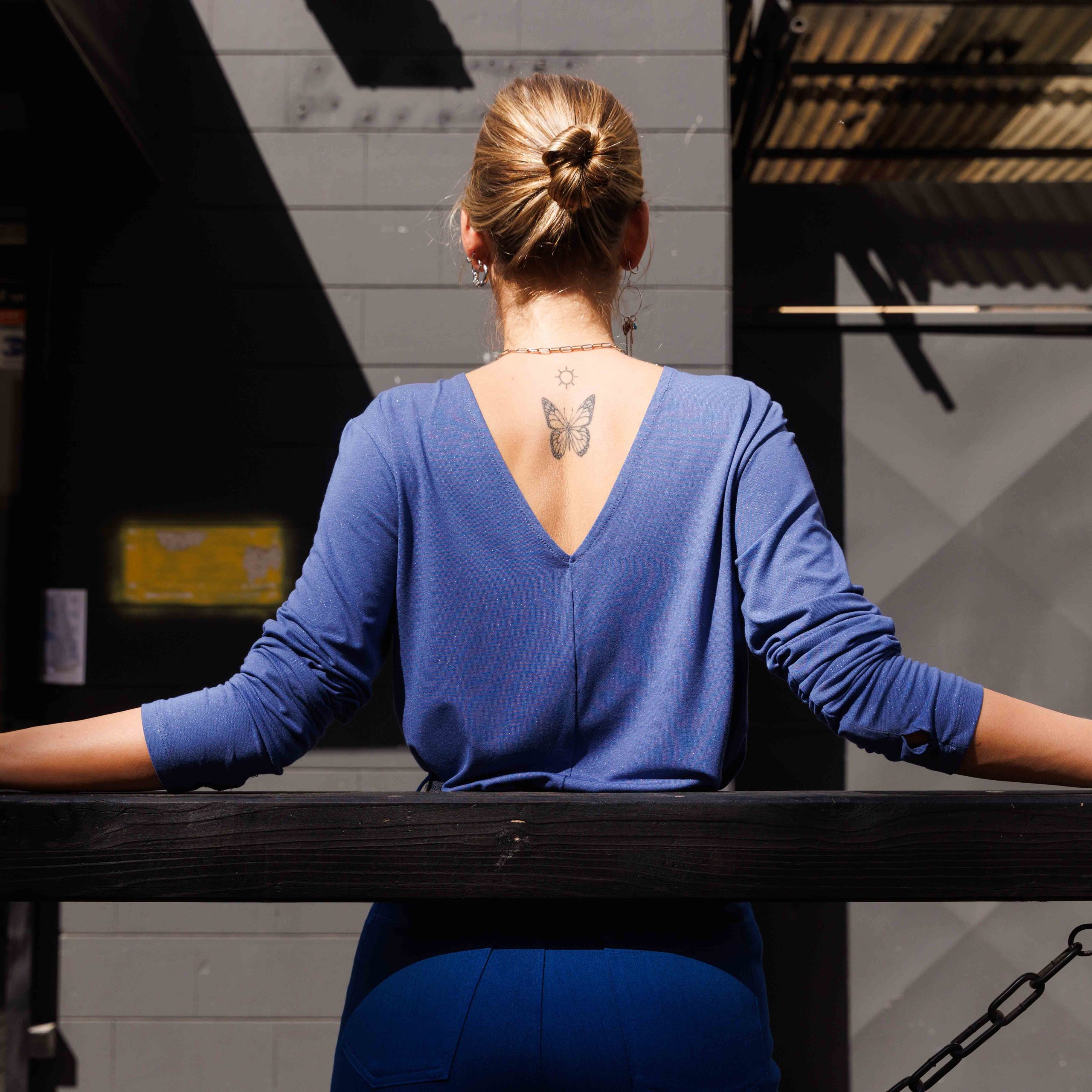 חולצה בגזרה קלאסית מדויקת עם מפתח וי מושלם שניתן ללבוש בשני הכיוונים! כשמפתח הווי מקדימה וסגור מאחור או אם רוצים שמקדימה יהיה מפתח עגול ומפתח וי מאחור.