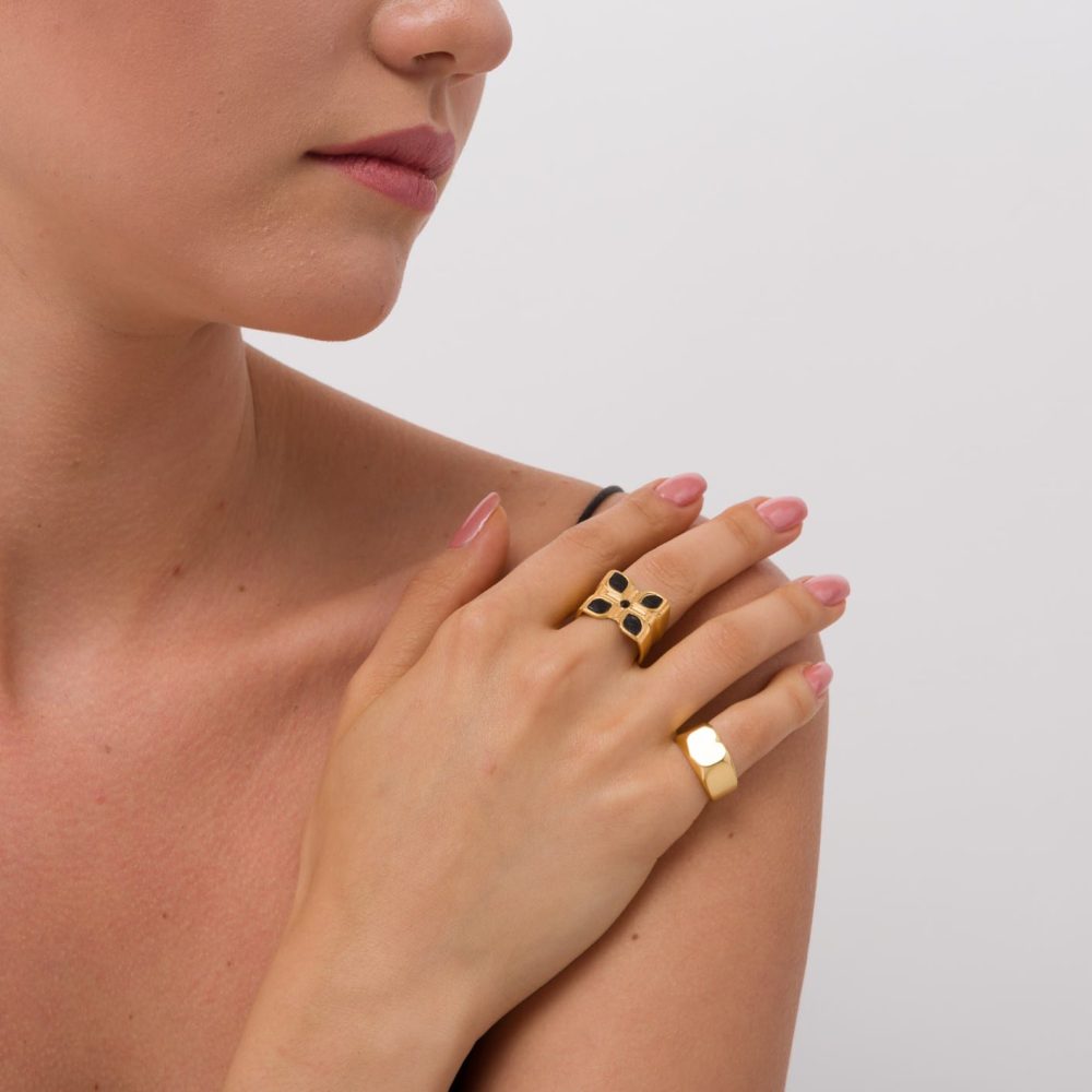 טבעת חותם לזרת בציפוי 24 קראט בעובי של 1 מיקרון איכותי או בציפוי כסוף בגוון מט.