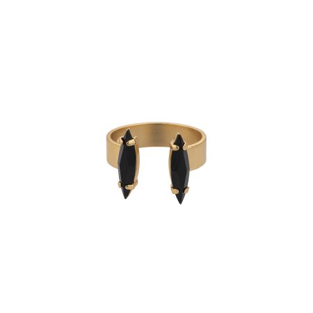 טבעת מקסימה עשויה זהב 14 קראט עם בית אבן בצורת לב חלול משובץ זרקונים עדינים בצבע קריסטל.