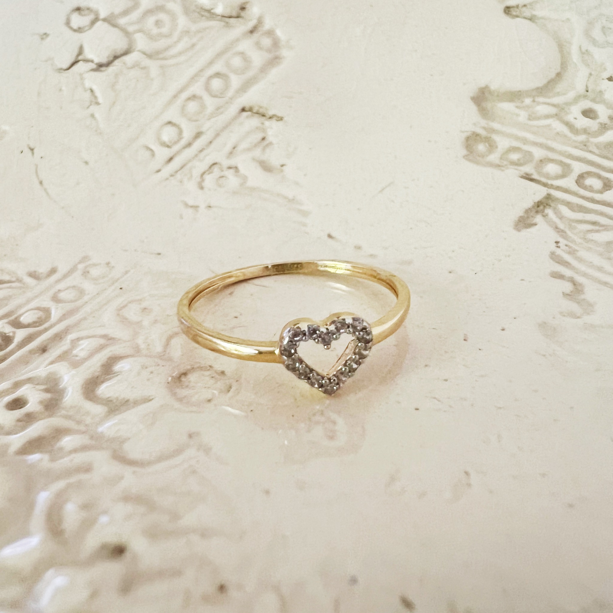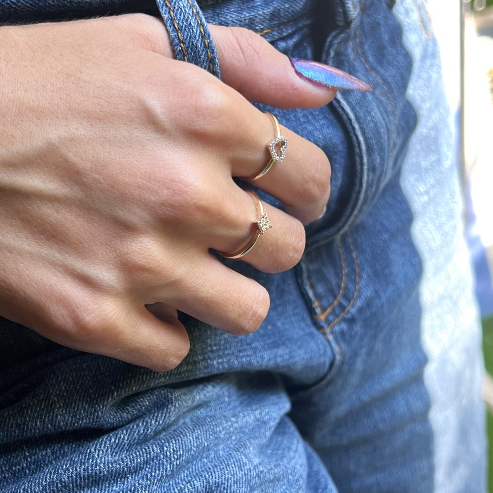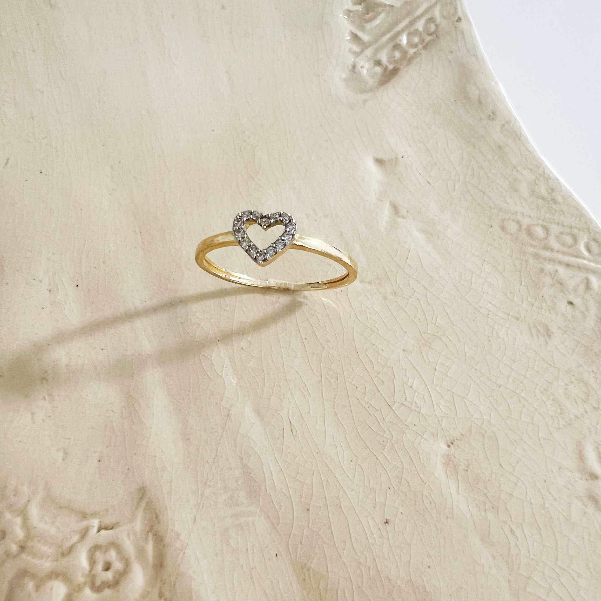 טבעת לב חלול משובץ זהב מלא 14 קראט