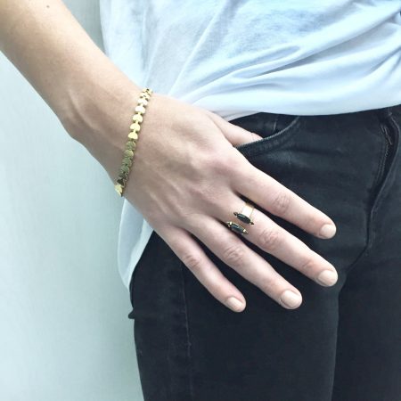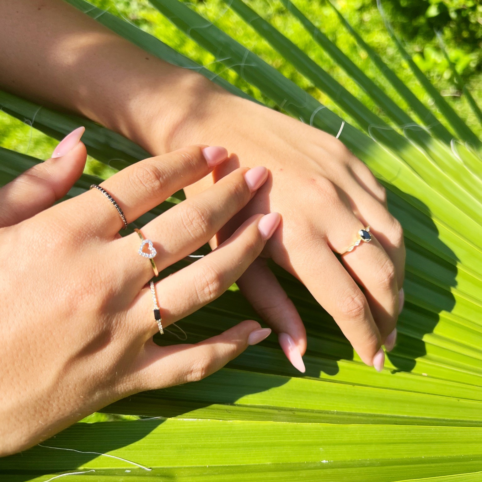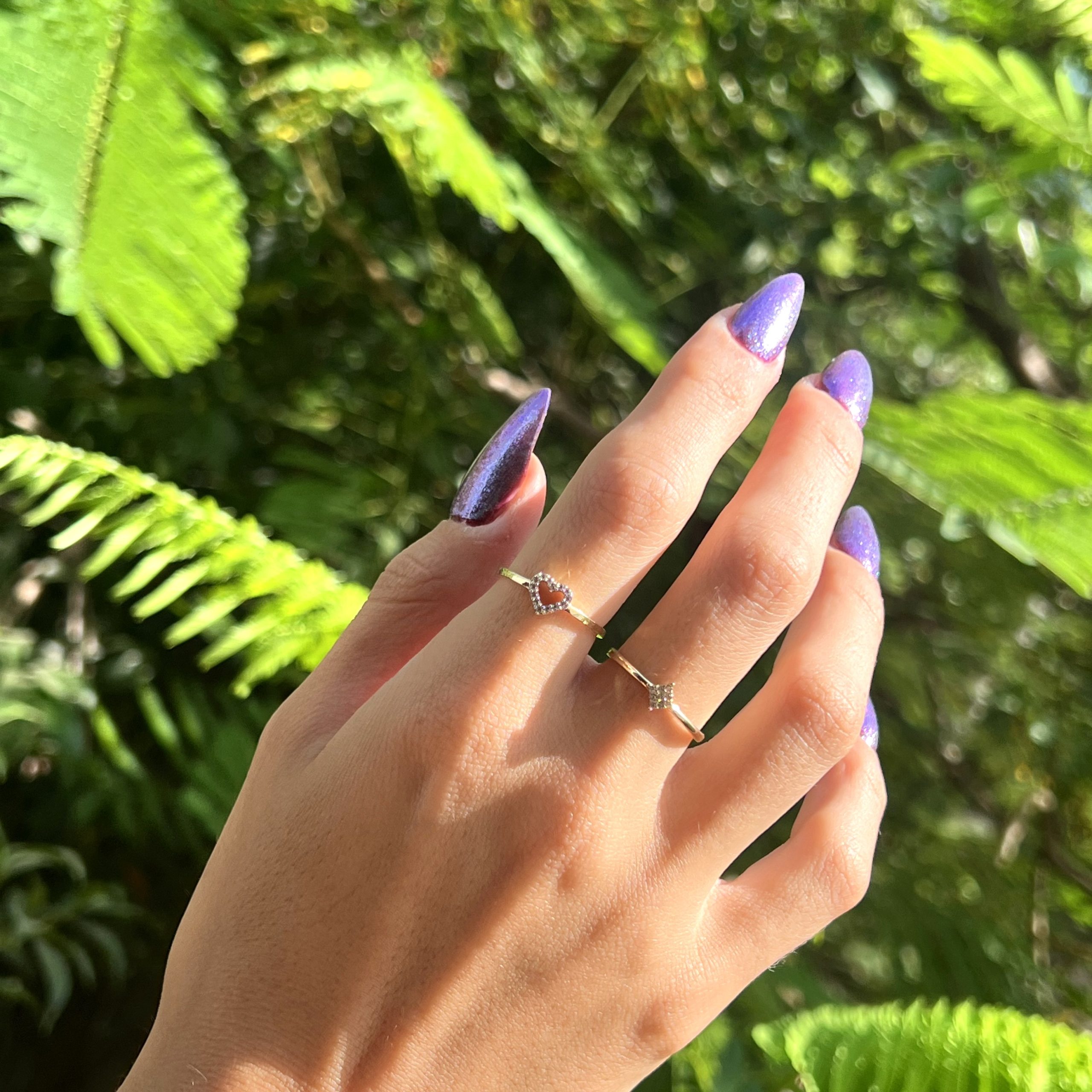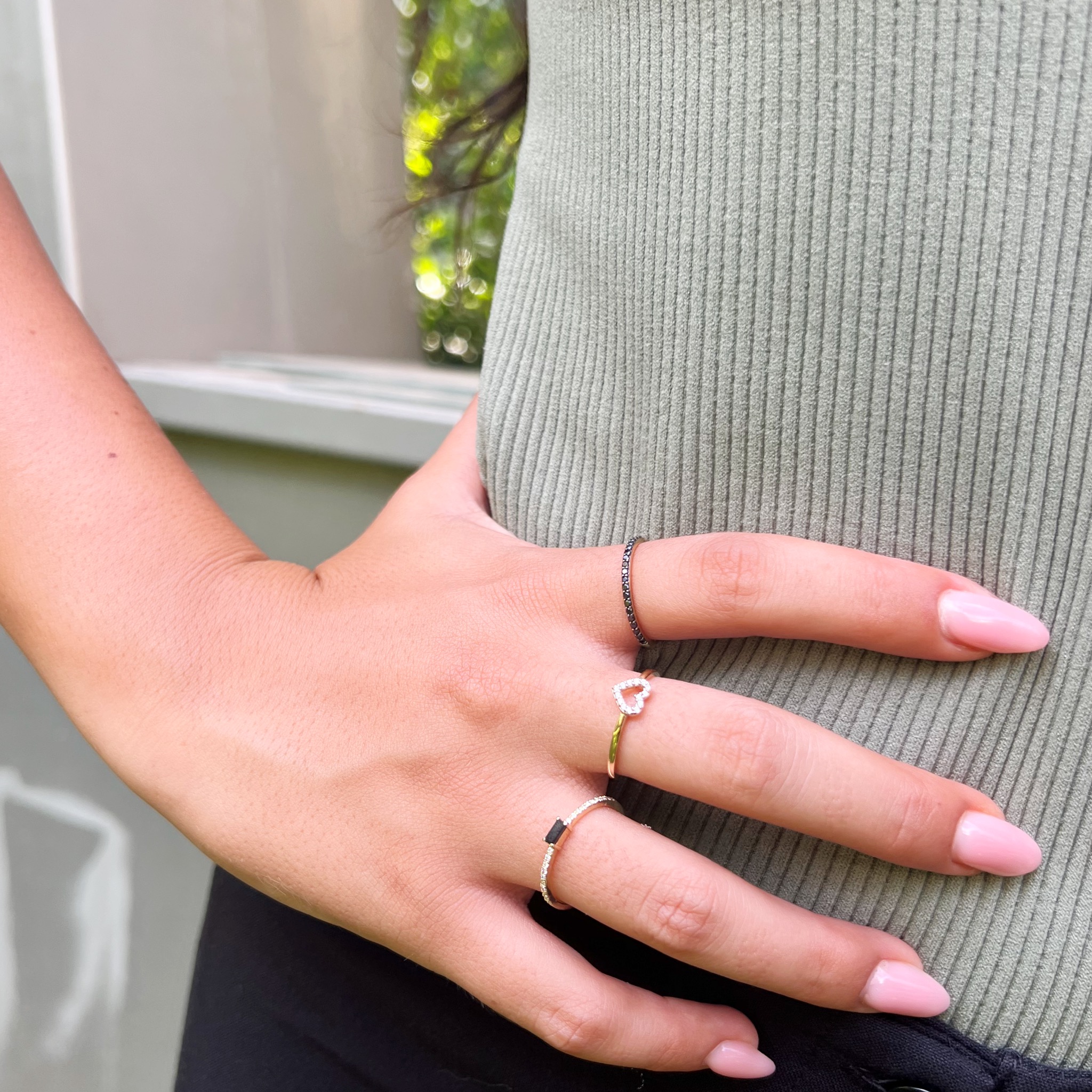 טבעת לב חלול משובץ זהב מלא 14 קראט