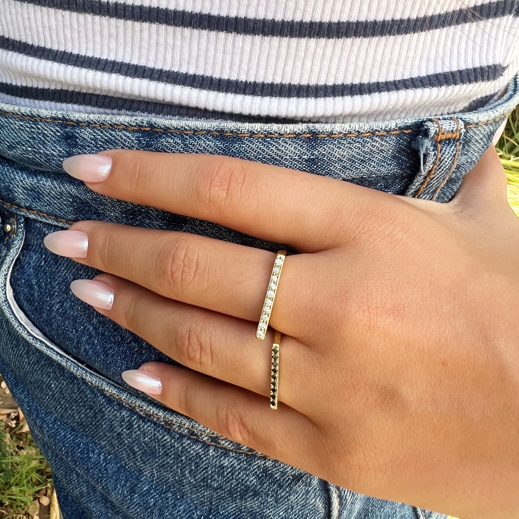 טבעת פס משובץ זרקונים/יהלומים שחורים זהב מלא 14 קראט