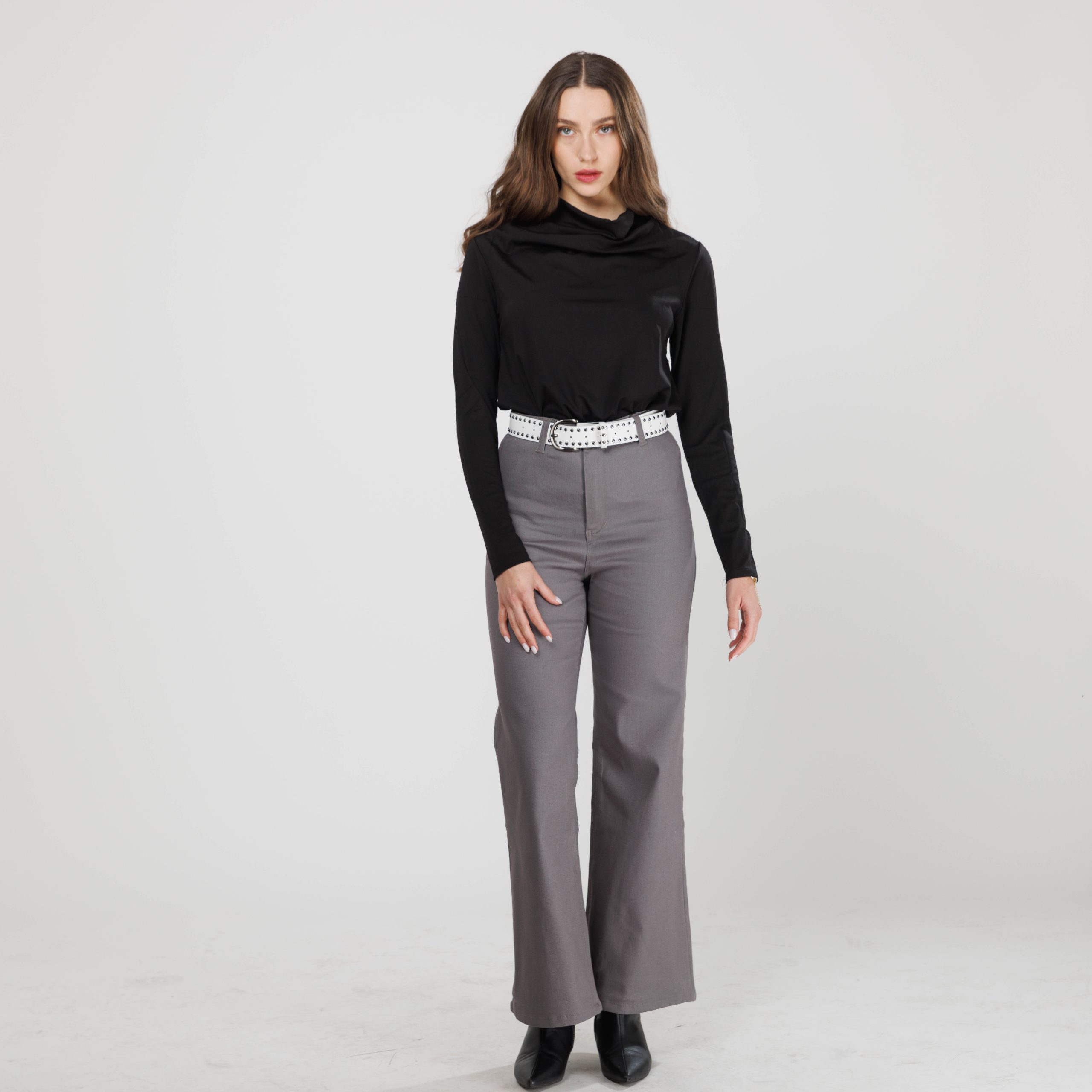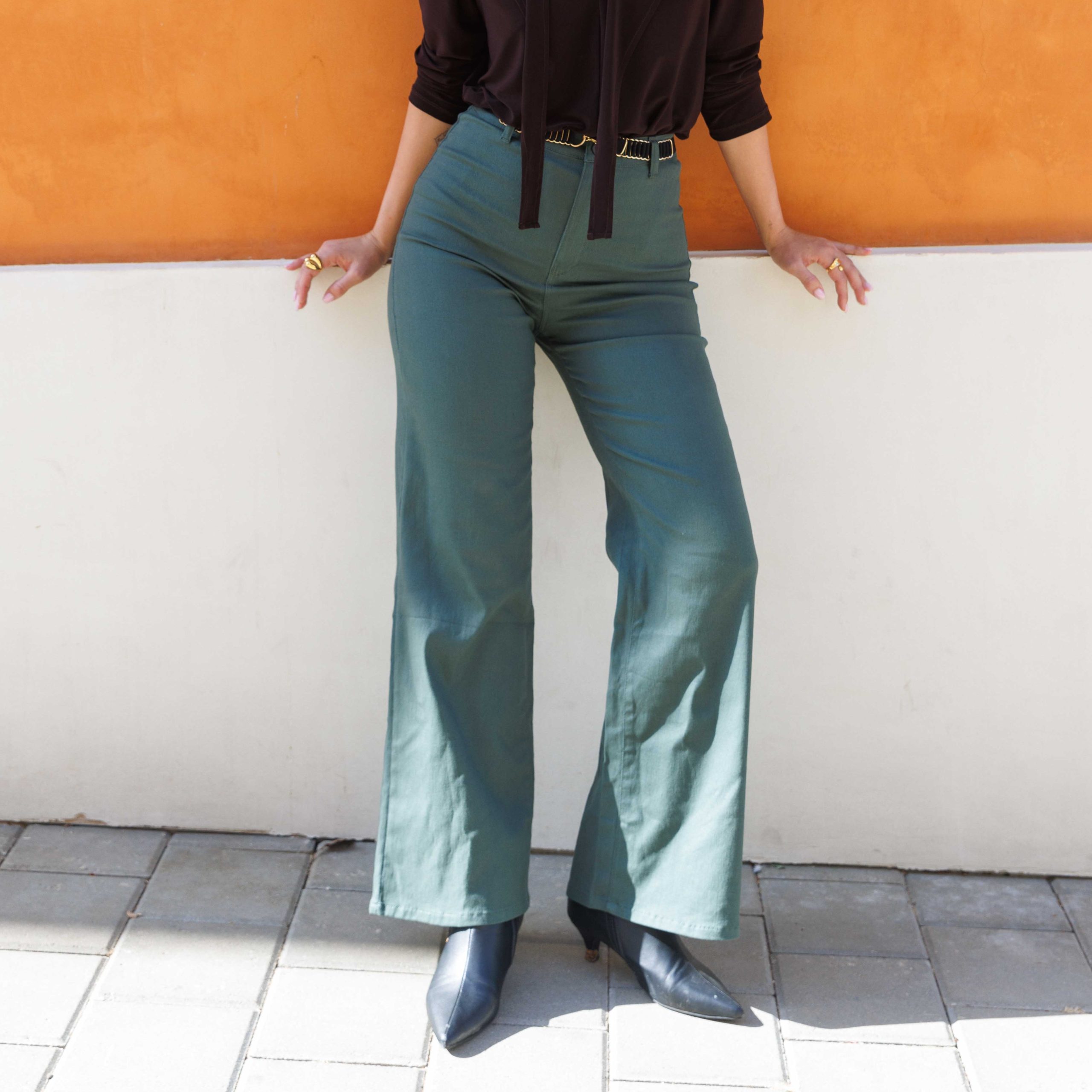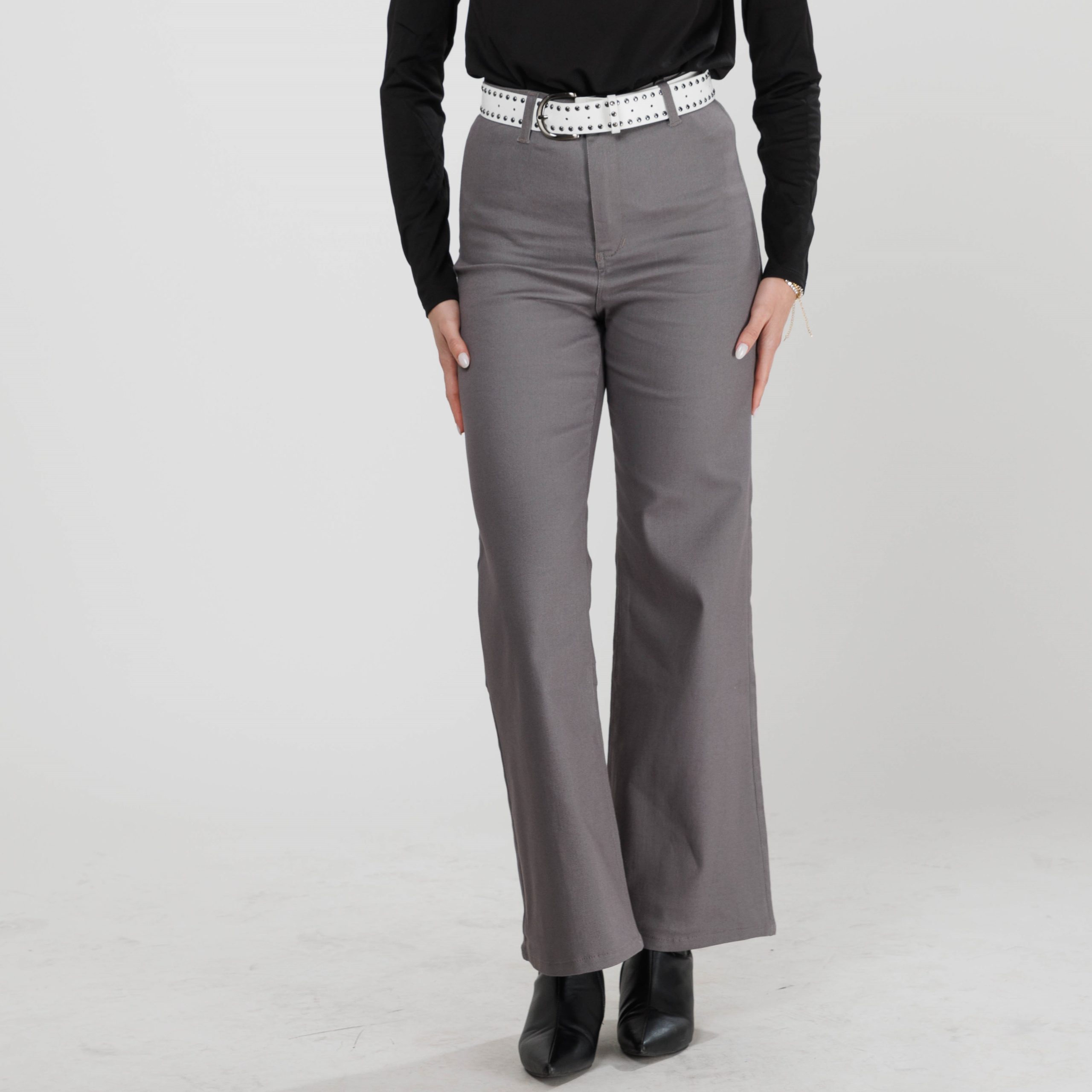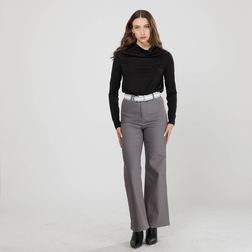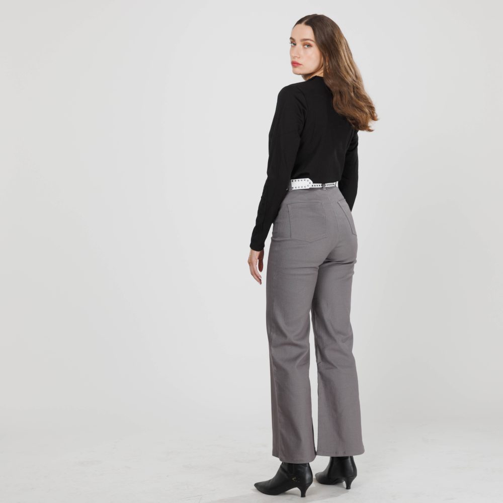 מכנסיים ארוכים רחבים בגזרה גבוהה ונוחה באורך מושלם, עשויים בד דריל איכותי ומרשים.