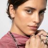 עגיל חישוק בקוטר 1.5 ס”מ ממנו נופלת שרשרת כסף עדינה, עגיל חישוק בקוטר 1.5 ס”מ עם תליון שפיץ משובץ אבני קריסטל שחורות, עגיל חישוק נקי בקוטר 1.5 ס”מ , עגיל כוכב צמוד משובץ באבן קריסטל לבנה ועגיל צמוד משובץ באבן שחורה עדינה.