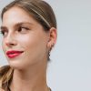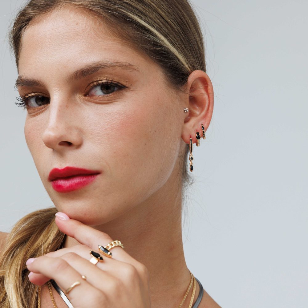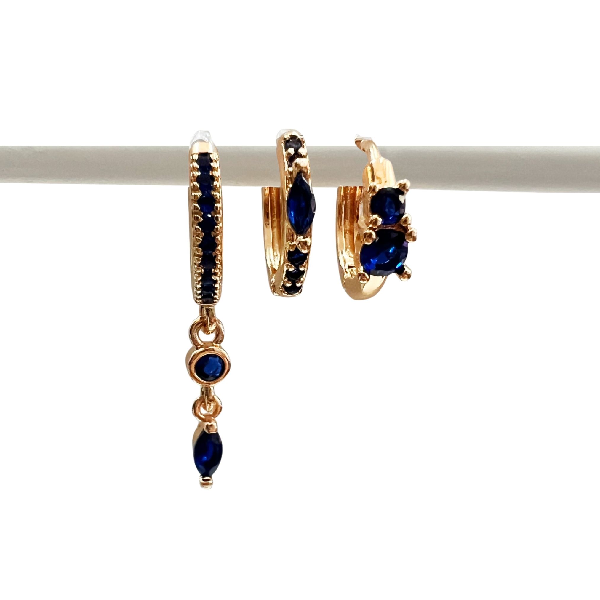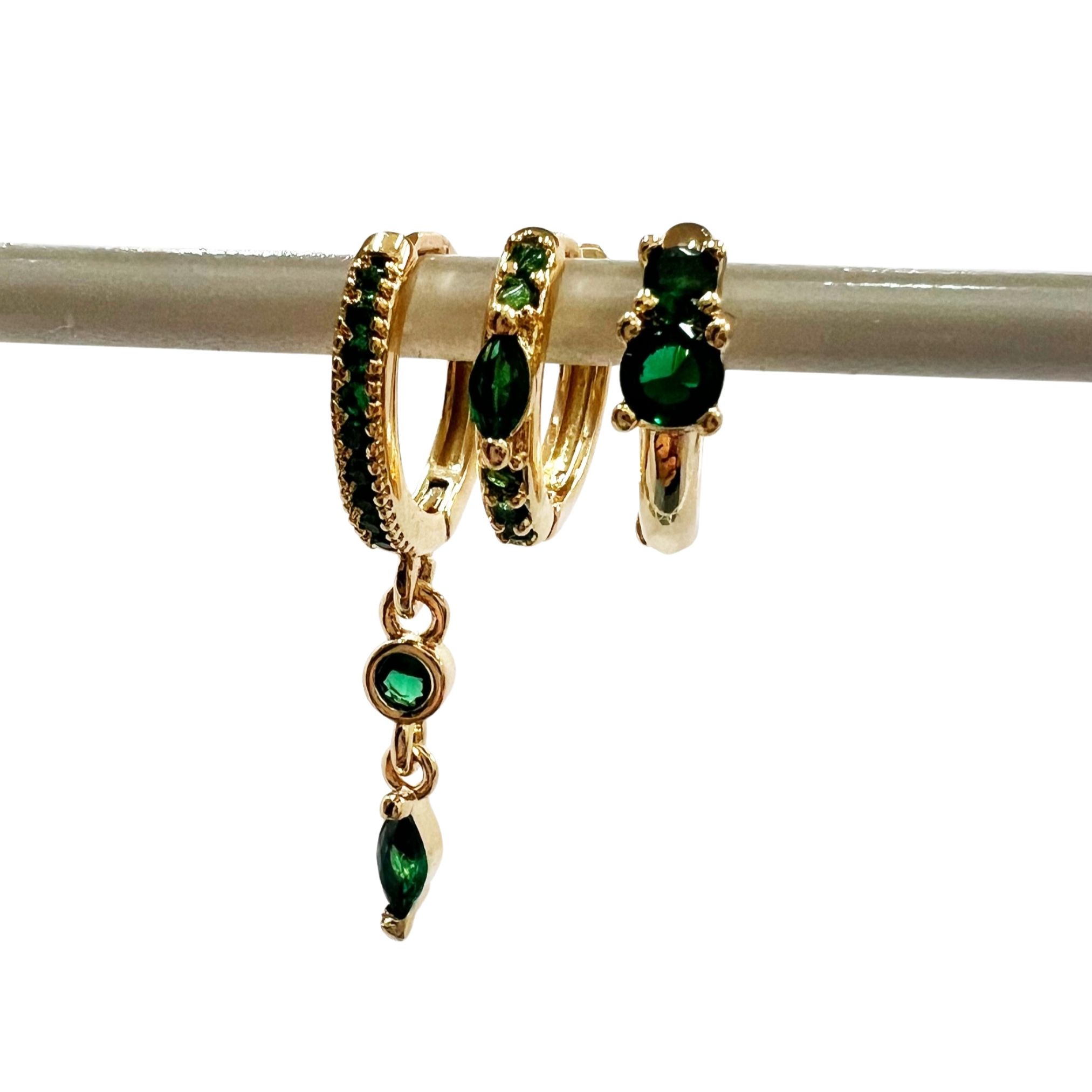 עגיל חישוק בקוטר של כ 1.2 ס”מ משובץ אבן מרקיזה וארבע אבנים קטנות משני צידיה. (על החישוק עצמו)