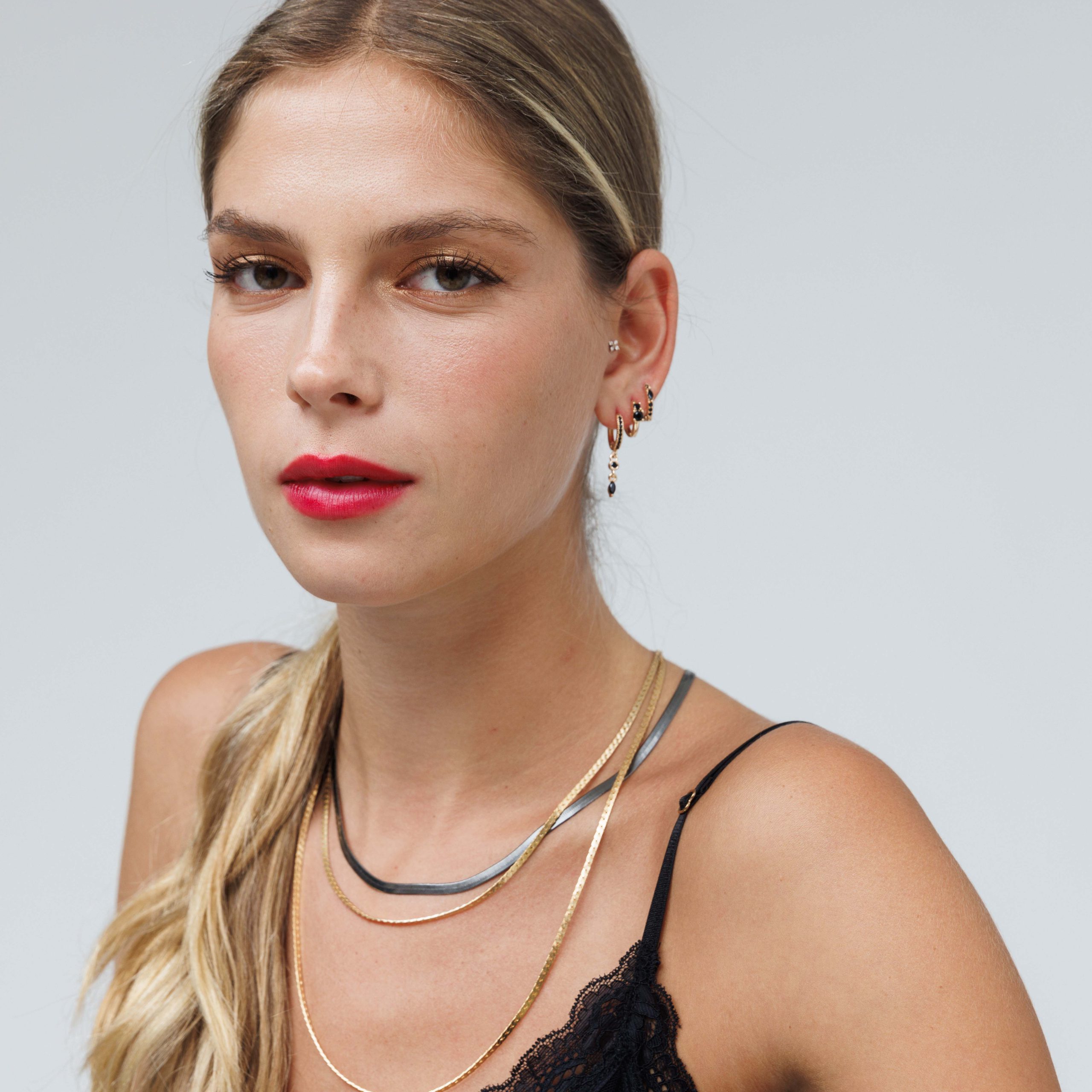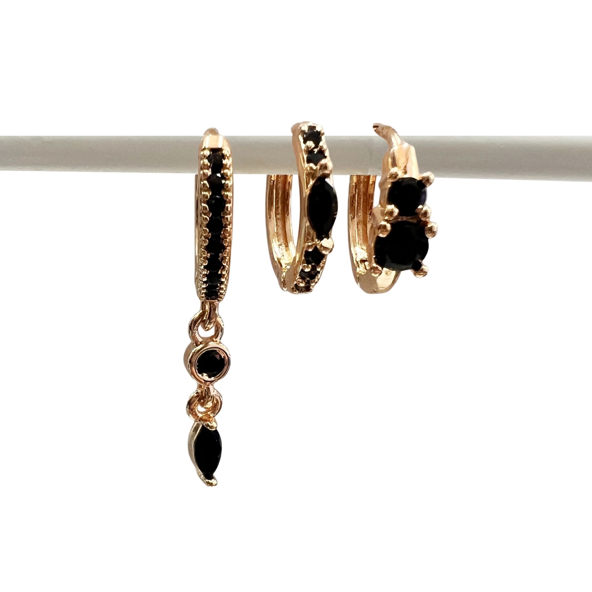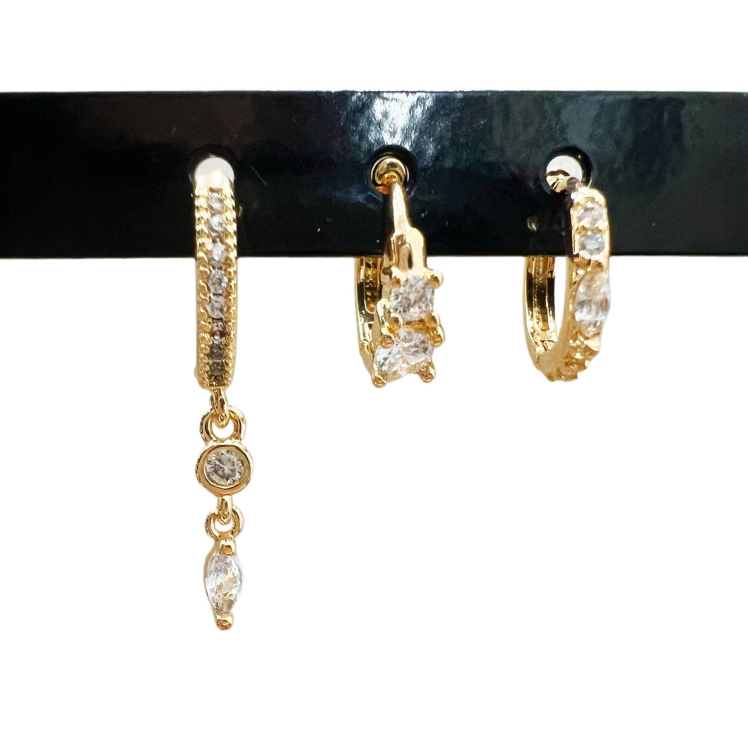עגיל חישוק בקוטר של כ 1.2 ס”מ משובץ אבן מרקיזה וארבע אבנים קטנות משני צידיה. (על החישוק עצמו)