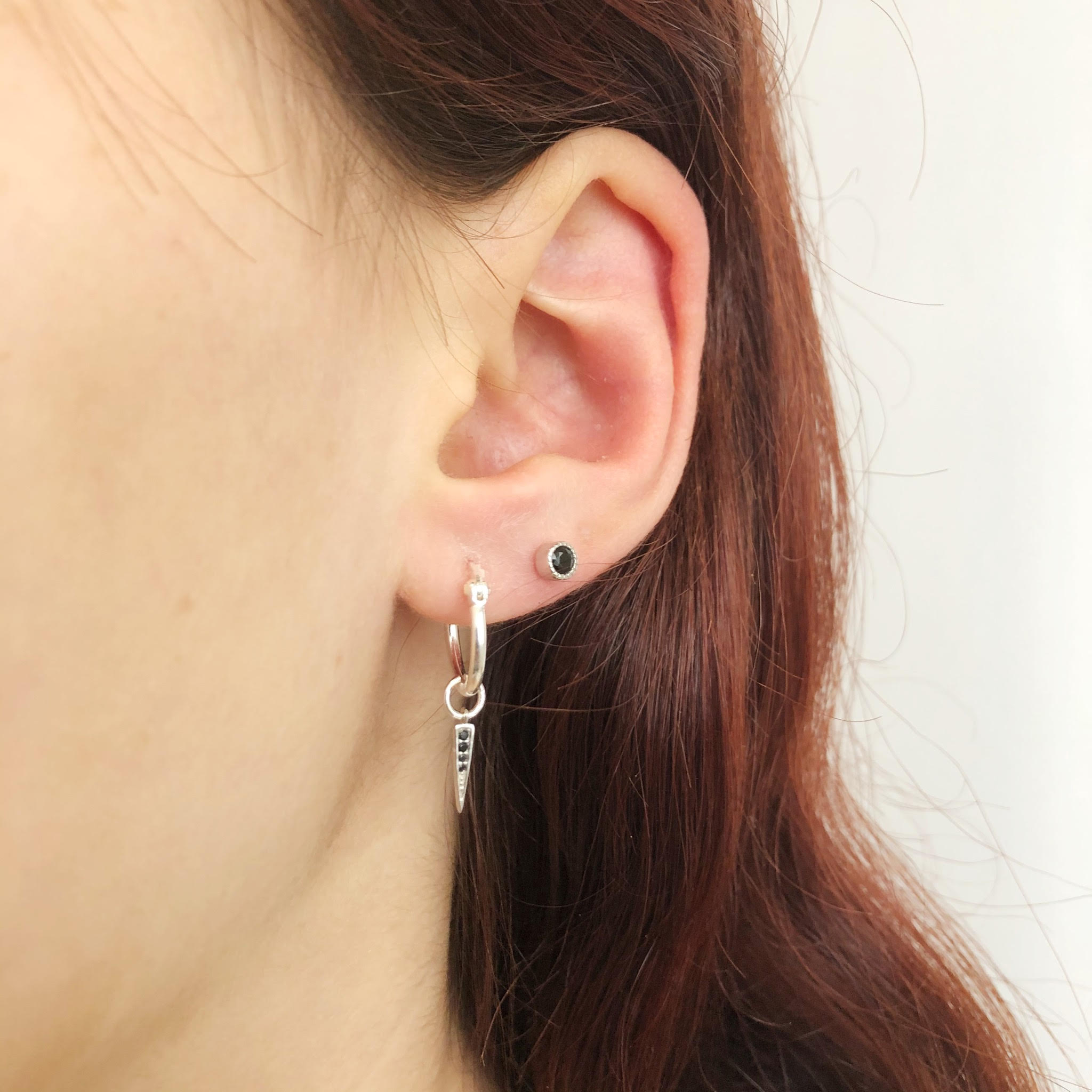 עגיל עם בית אבן עגול צמוד משובץ באבן שחורה.