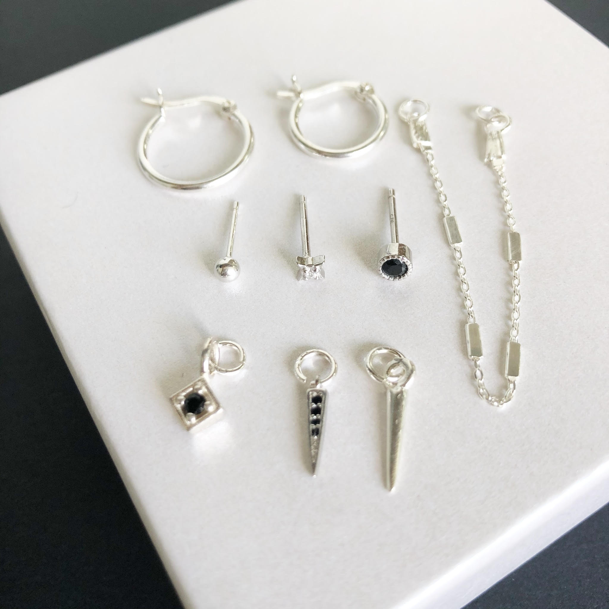 סט מטריף עם מספר עגילים, תליונים חישוקים ותוספות שניתן לשלב ולהתאים באינסוף אפשרויות. מתאים לאוזן עם מספר חורים או לשילוב א-סימטרי בשתי האוזניים.