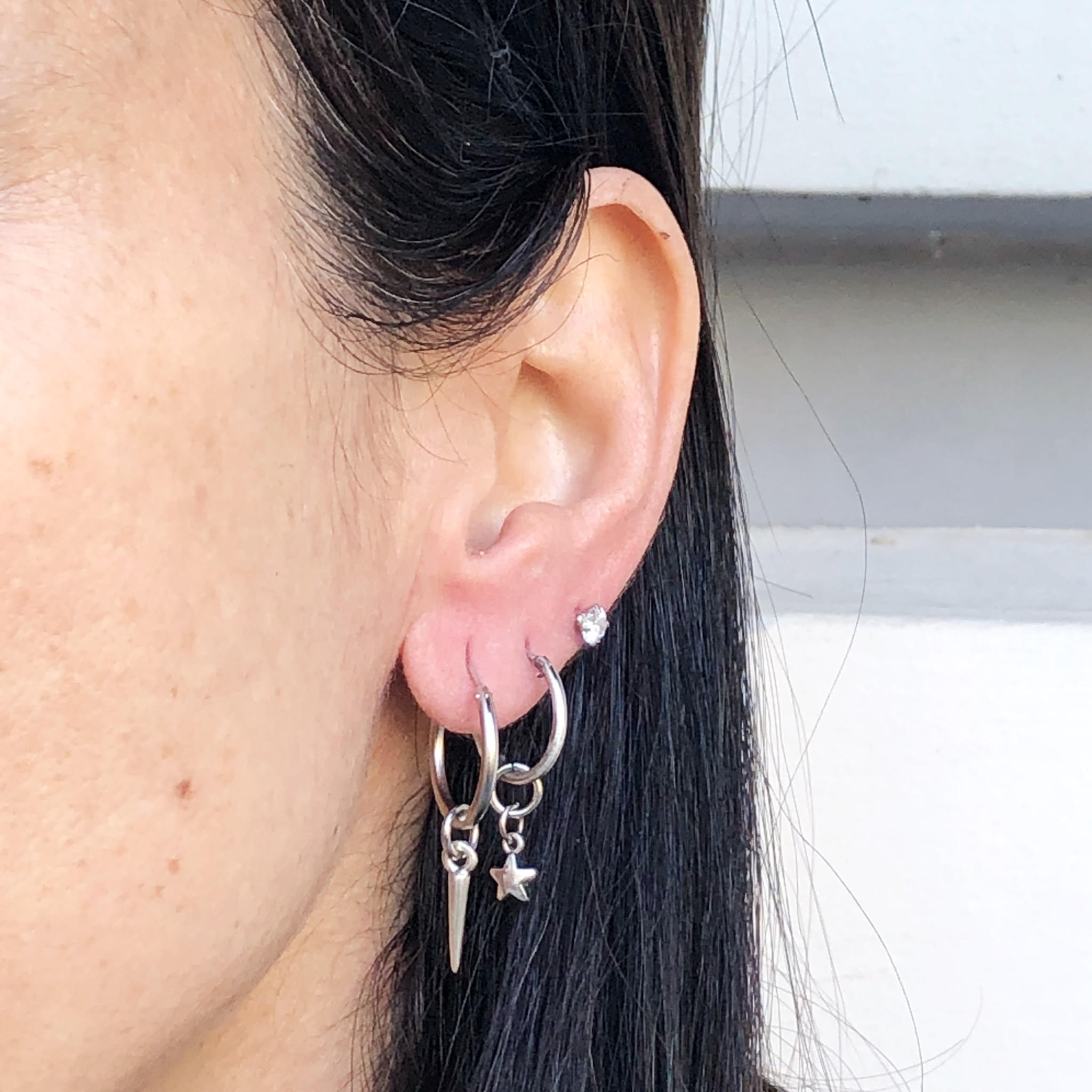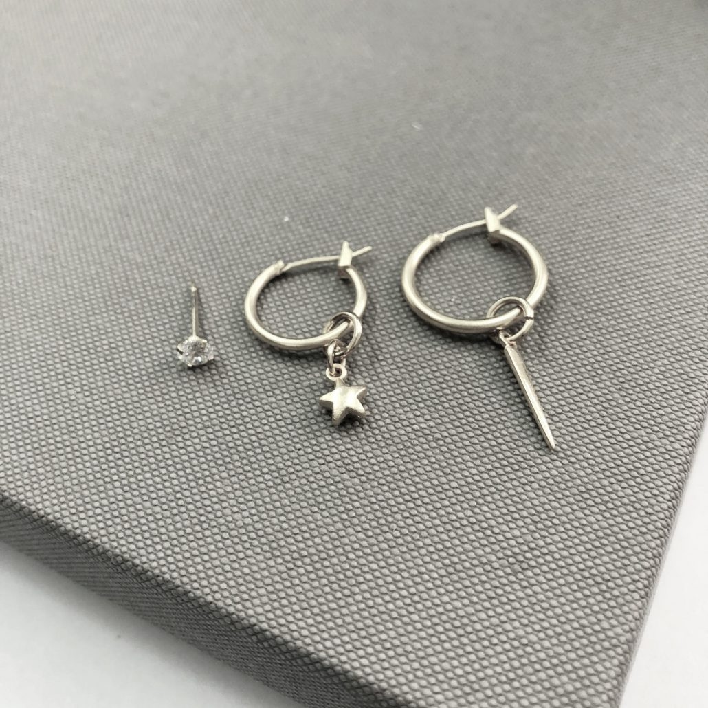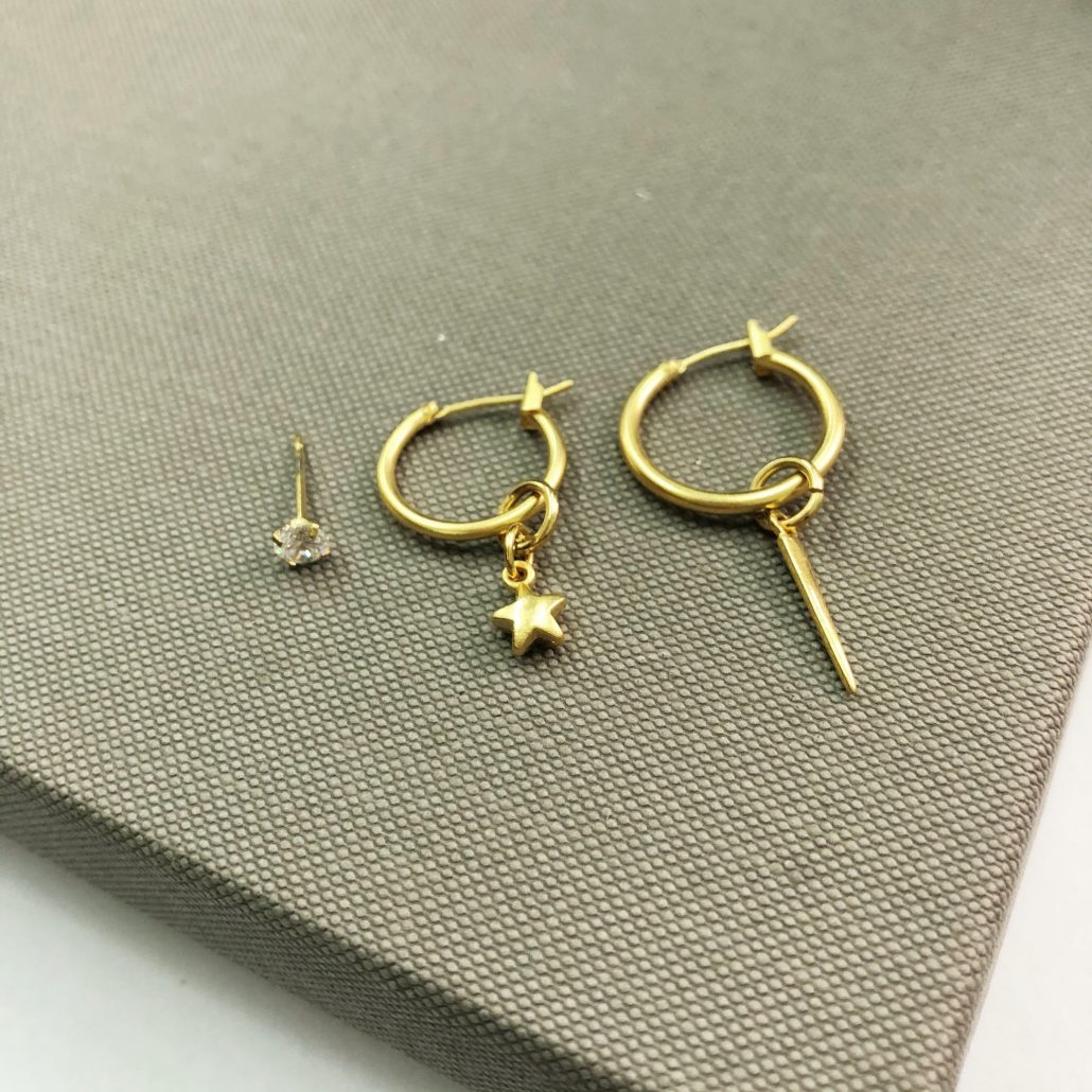 עגיל קטן בקוטר כ1.5 ס”מ עם תליון כוכב מקסים.