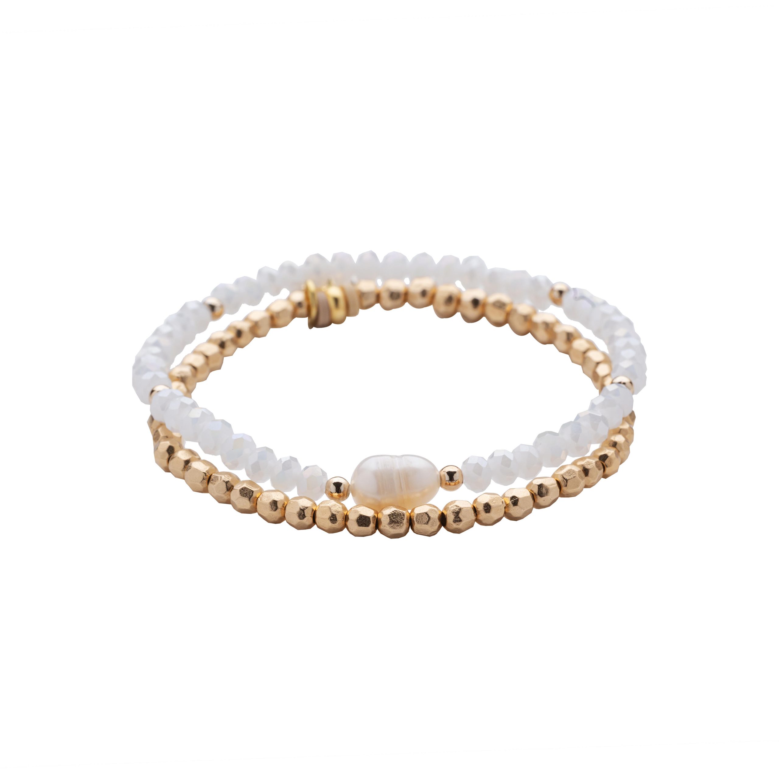 - חרוזי קריסטל משגעים מושחלים על חוט סיליקון איכותי בשילוב פנינה אמתית מרשימה וחרוזי זהב עדינים.