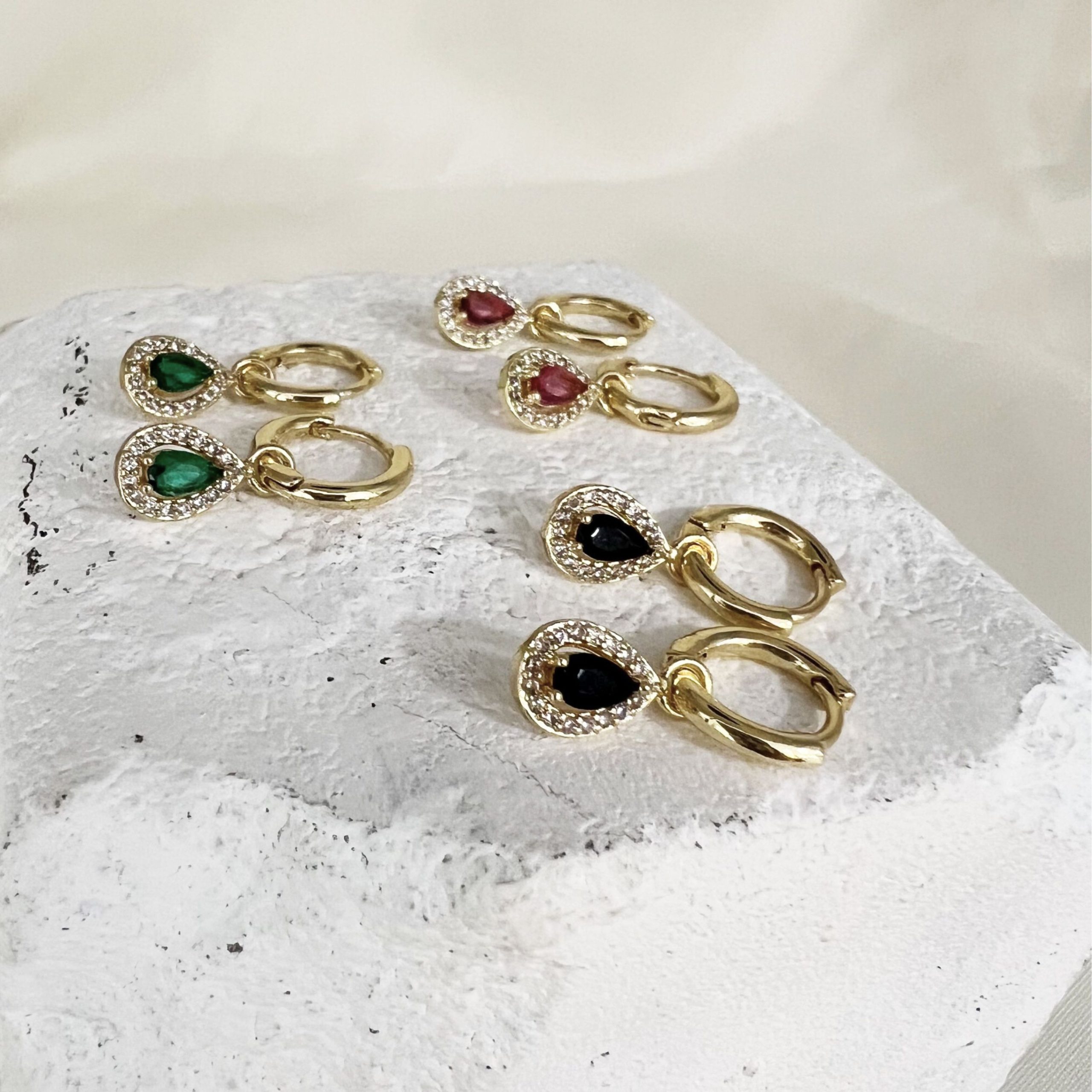 עגילי חישוק עם תליון טיפה משובצים קריסטלים