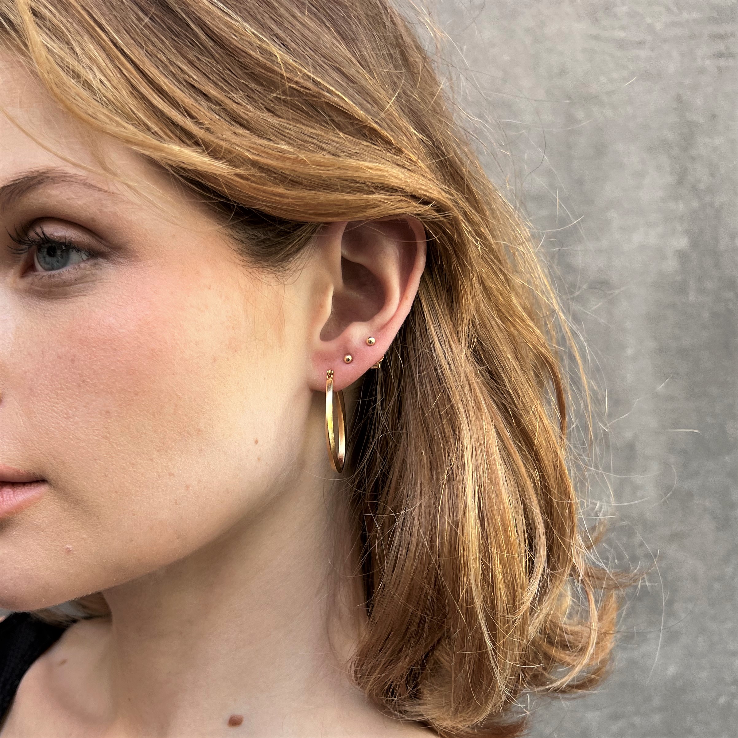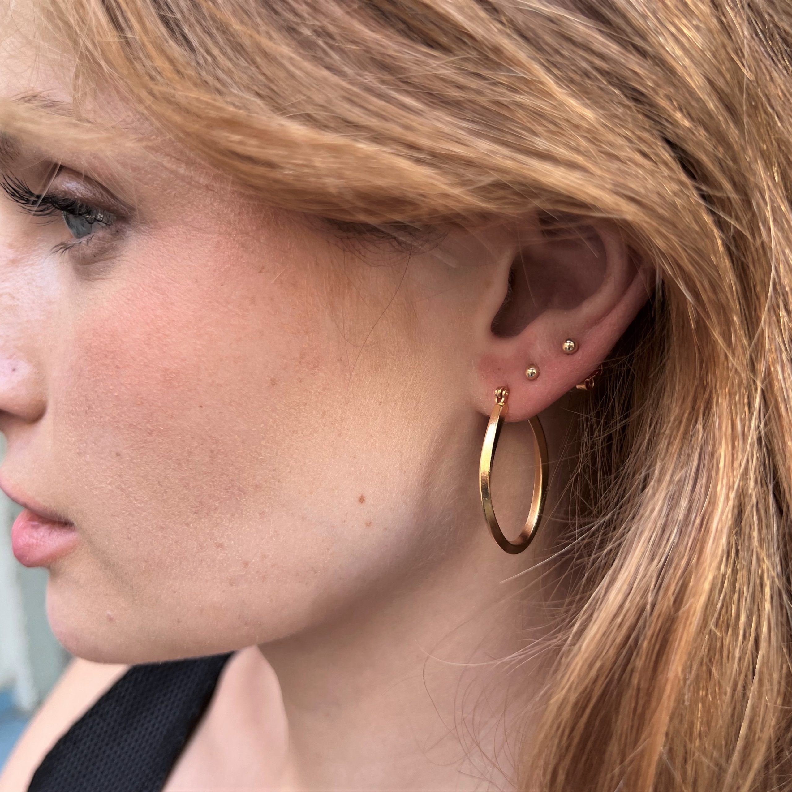 זוג עגילים במראה קלאסי עדין ובעל נוכחות. עשויים מתכת מצופה זהב מט 24K או ציפוי כסוף בגוון מט.