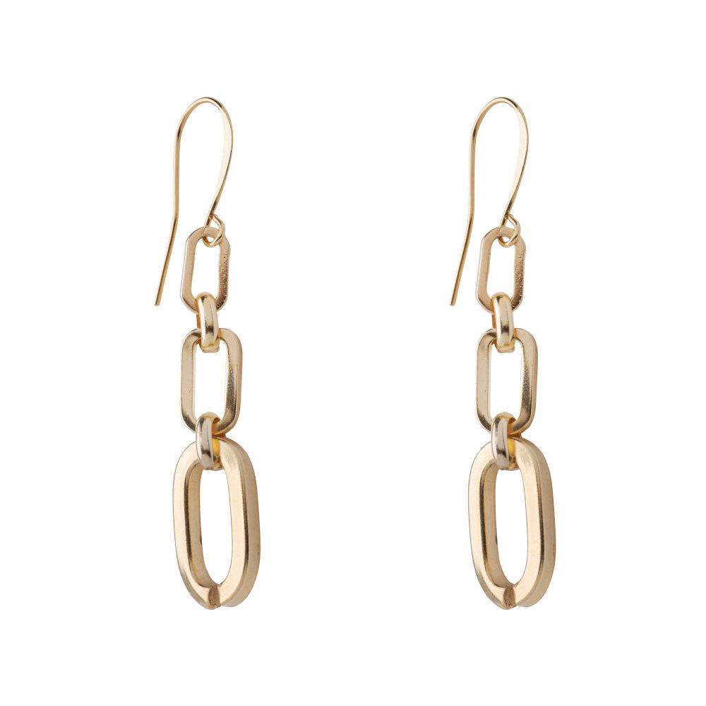 עגילים ארוכים בעיצוב חוליות במגוון גדלים, עשויים מתכת בציפוי זהב 24 קראט או בציפוי כסוף בגוון מט.
