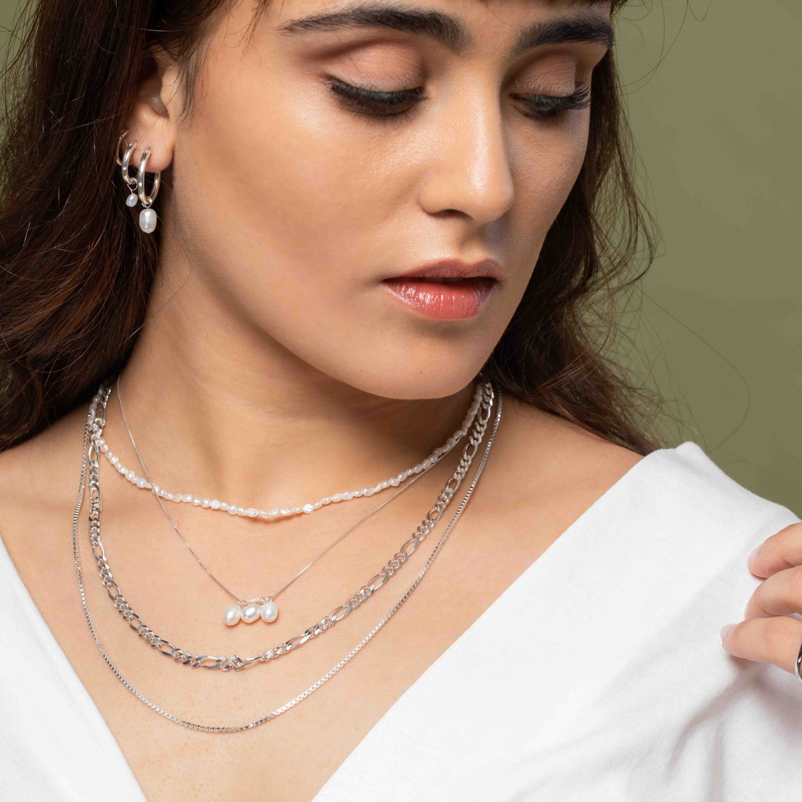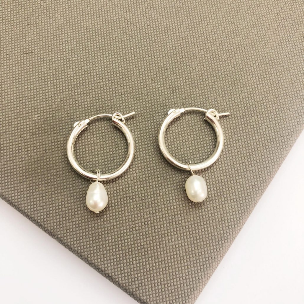 זוג עגילי חישוק בקוטר 18 מ”מ מכסף אמיתי עליהם תלויה פנינה אמיתית מקסימה.