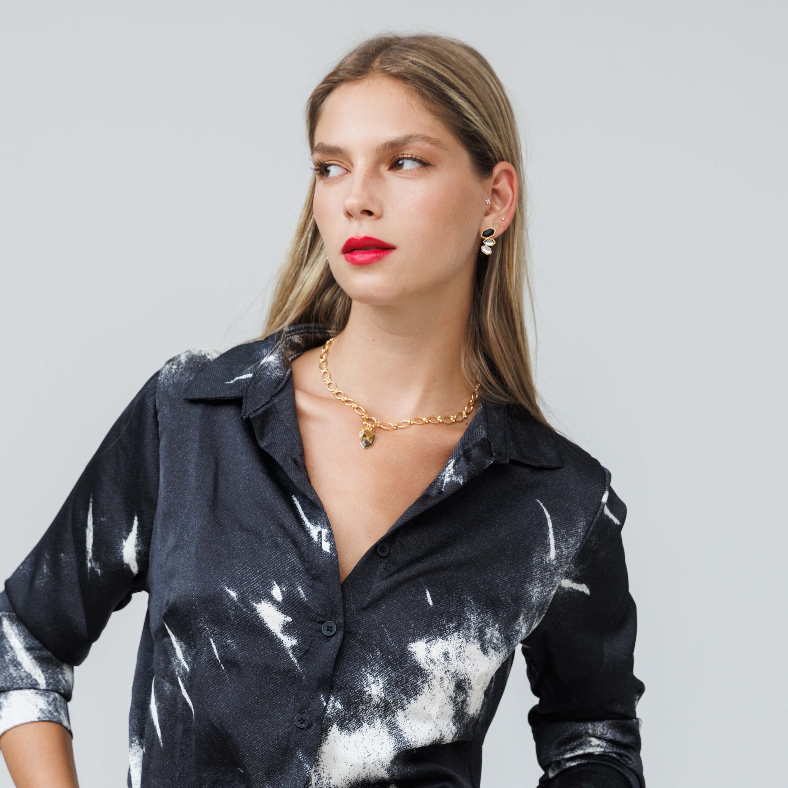 עגיל עם נוכחות מרשימה עשוי מתכת בציפוי זהב 24 קראט או בציפוי כסוף בגוון מט