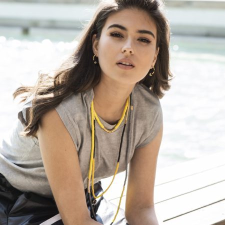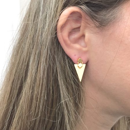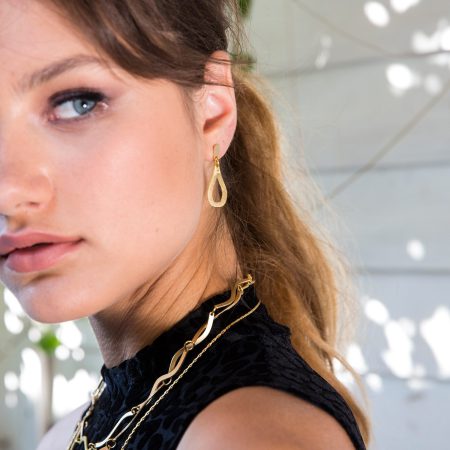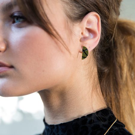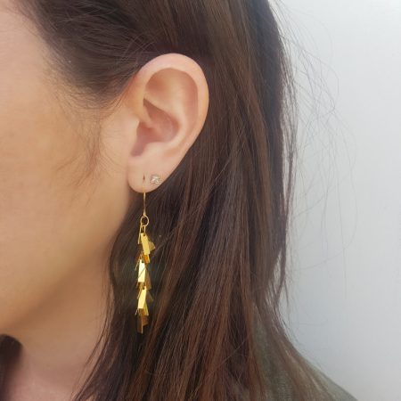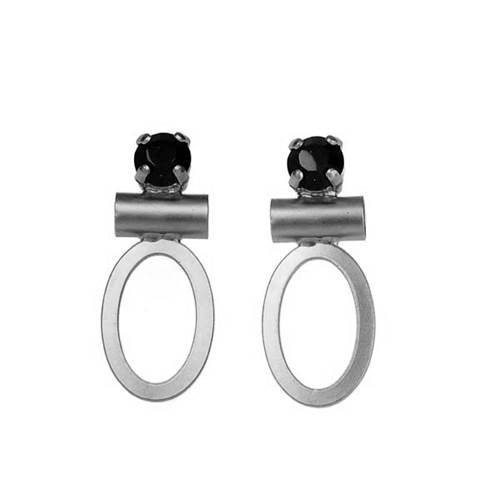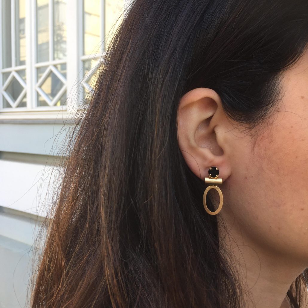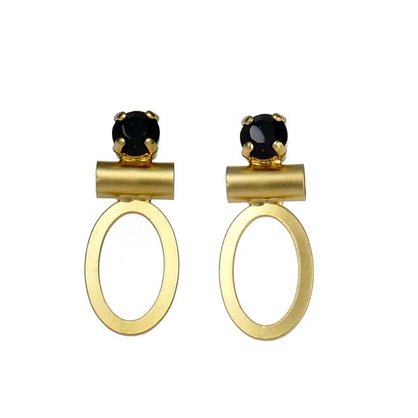 עגילים צמודים לאוזן עשוי פליז מצופה זהב 24 קארט או ציפוי כסוף בגוון מט, משובץ באבן סברובסקי שחורה.