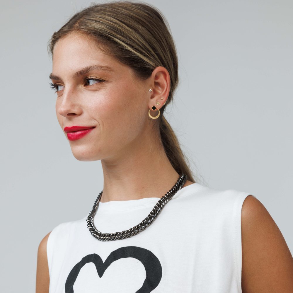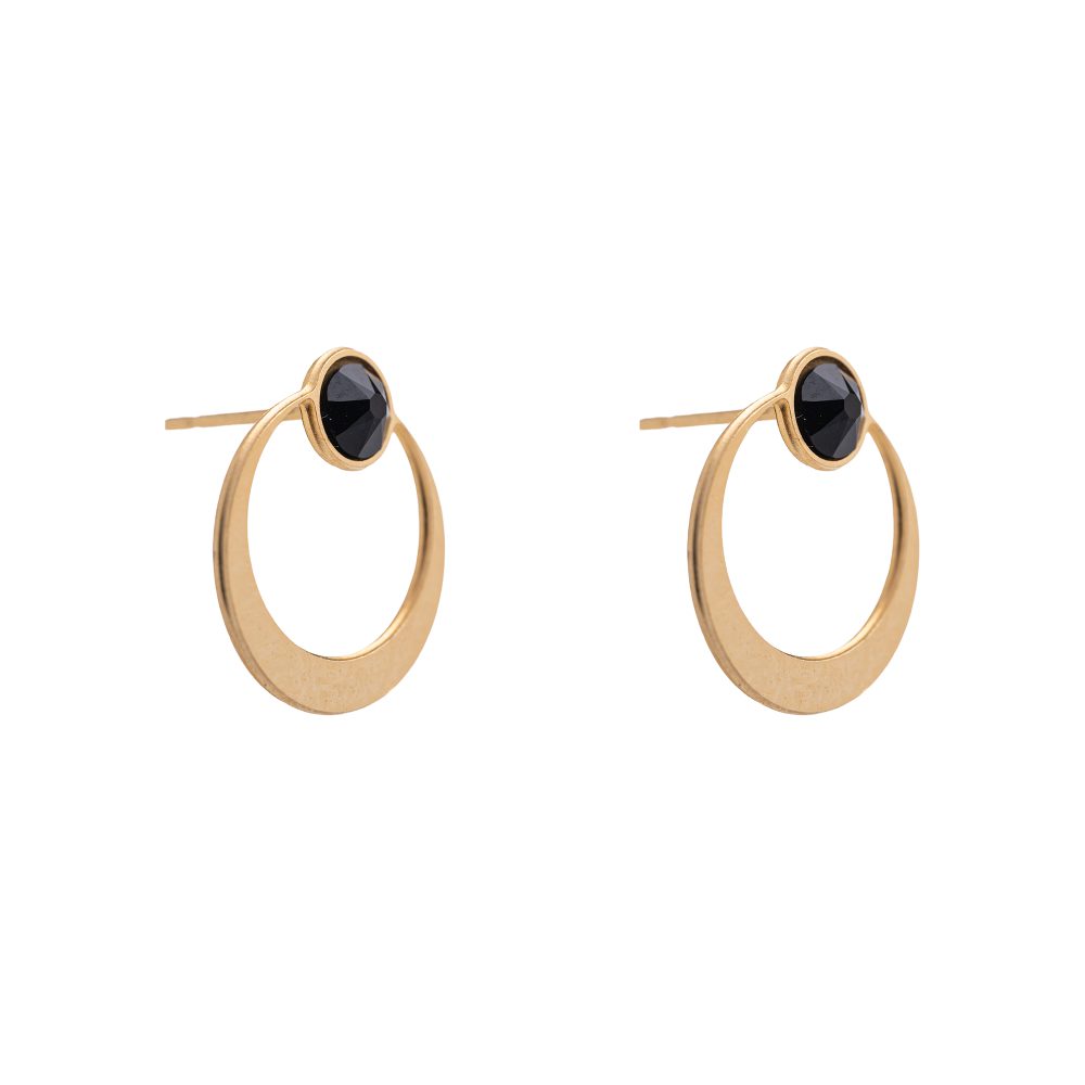נוכח ומרשים עשוי מתכת בציפוי זהב 24 קראט או בציפוי כסוף בגוון מט משובץ – אבן סברובסקי בגוון שחור.