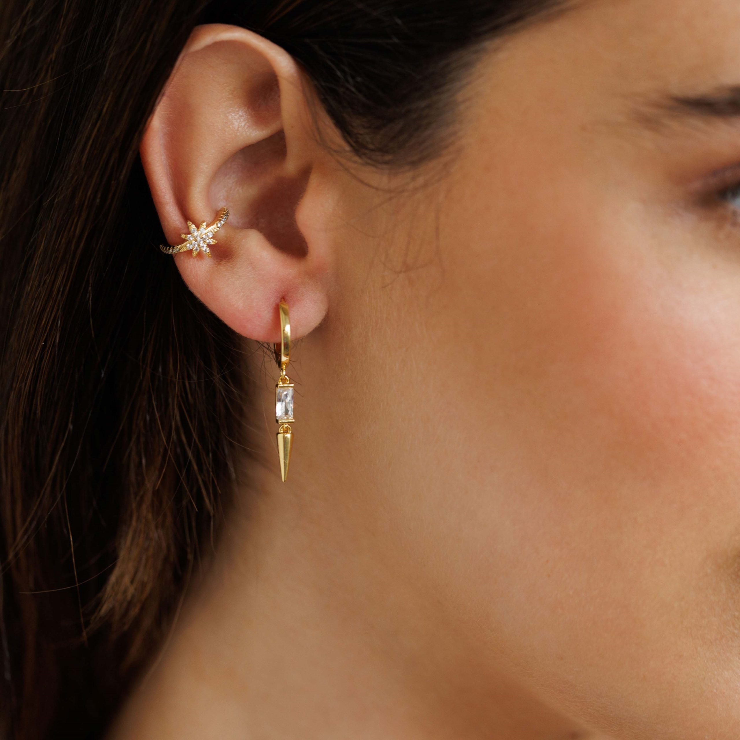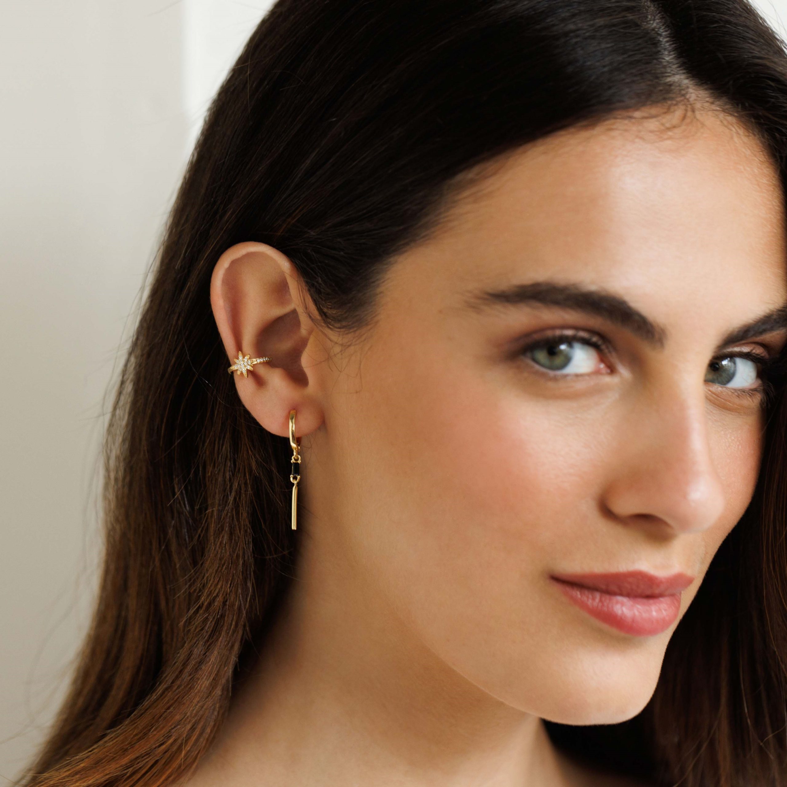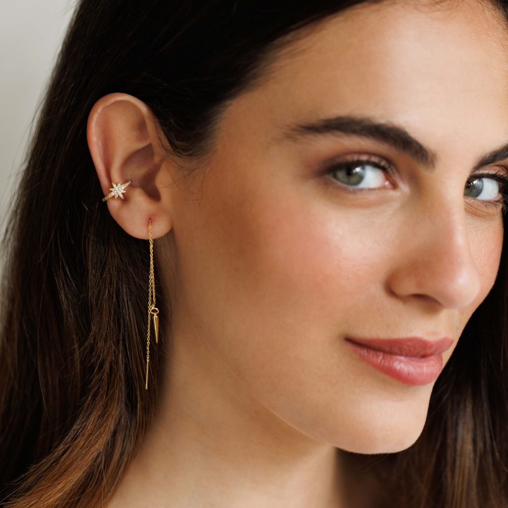 עגיל עדין שנועד לענידה על החלק העליון של האוזן ללא צורך בחור בצורת כוכב משובץ אבני קריסטל עדינות..