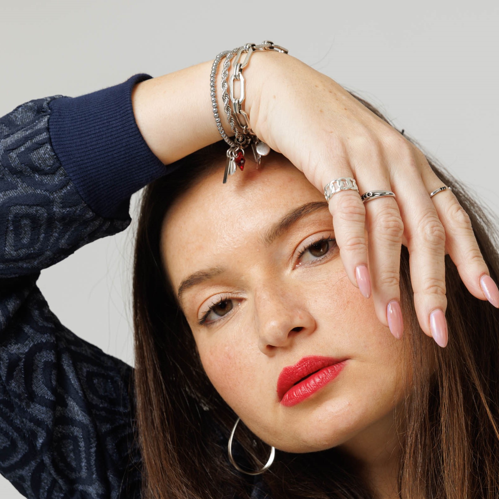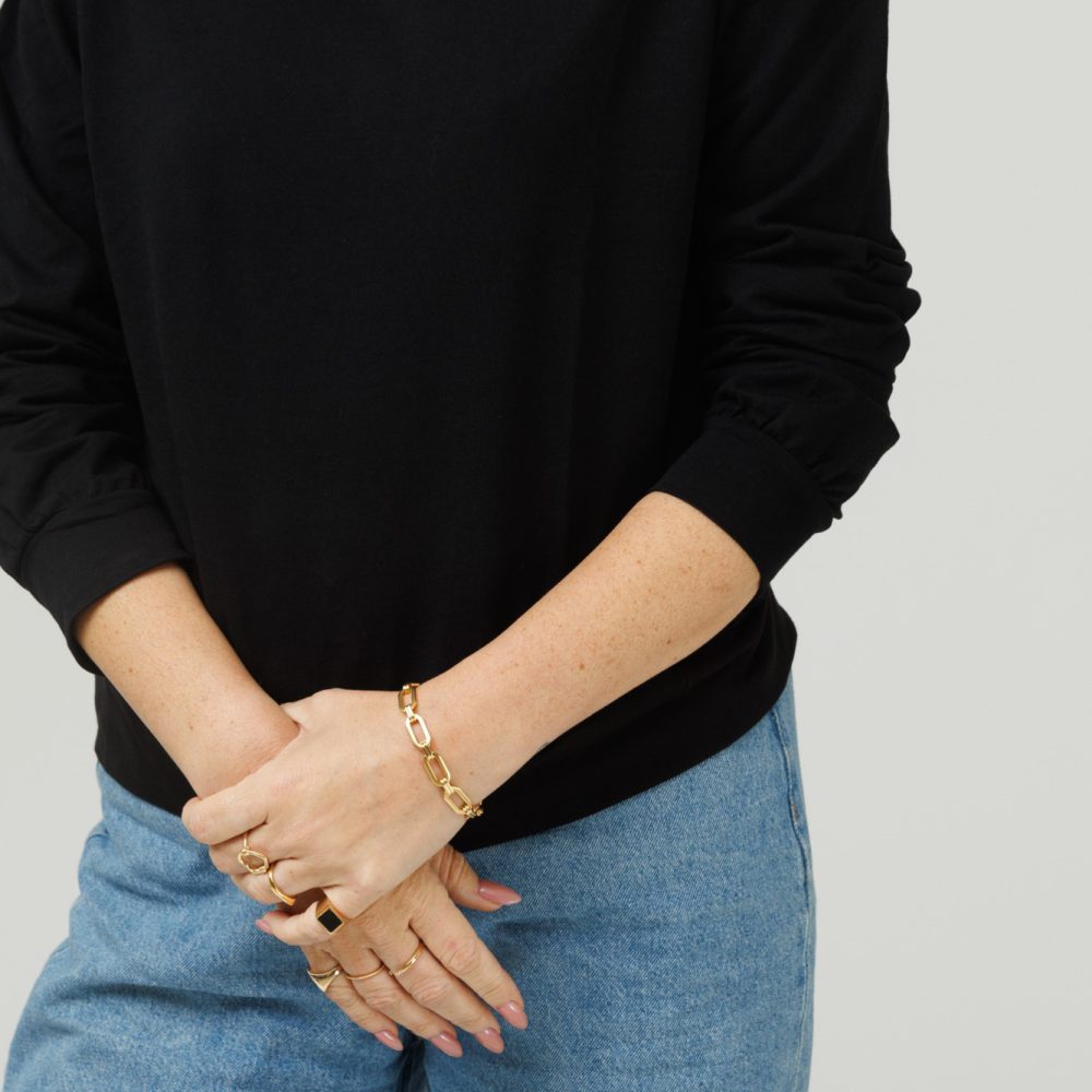 צמיד חוליות מחמיא מאוד ובעל נוכחות.מגיע בציפוי זהב 24 קראט או בציפוי כסוף בגוון מט