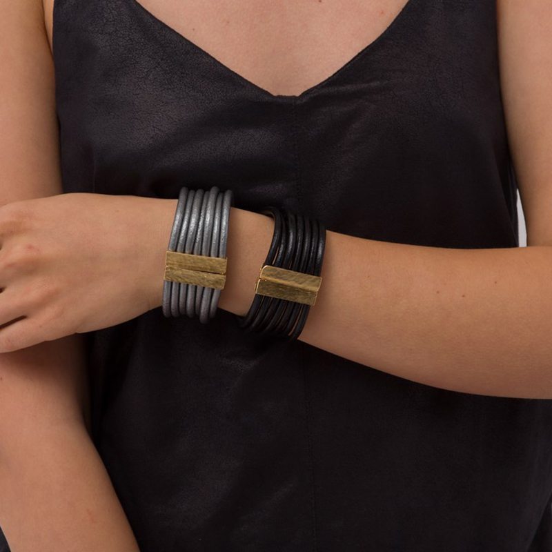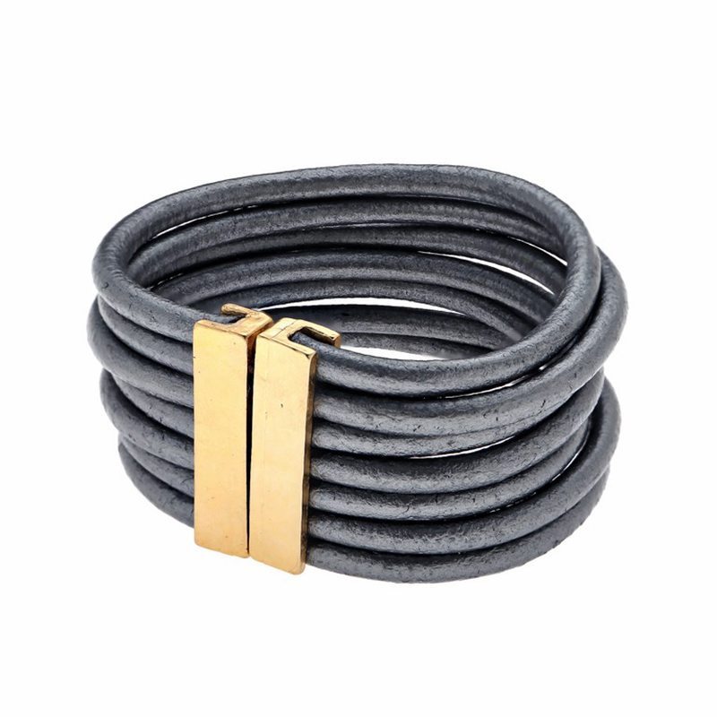 צמיד מהמם, שילוב של רצועות עור עם סוגר מגנט זהב.