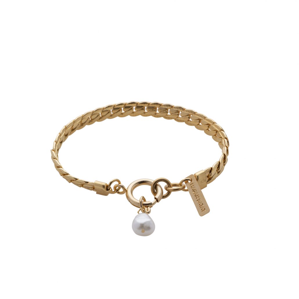 הצמיד עשוי שרשרת גורמט צמה מיוחדת ומרשימה בציפוי זהב 24 קראט בגוון מט או בציפוי כסוף בגוון מט. עם פנינת מים מתוקים איכותית.