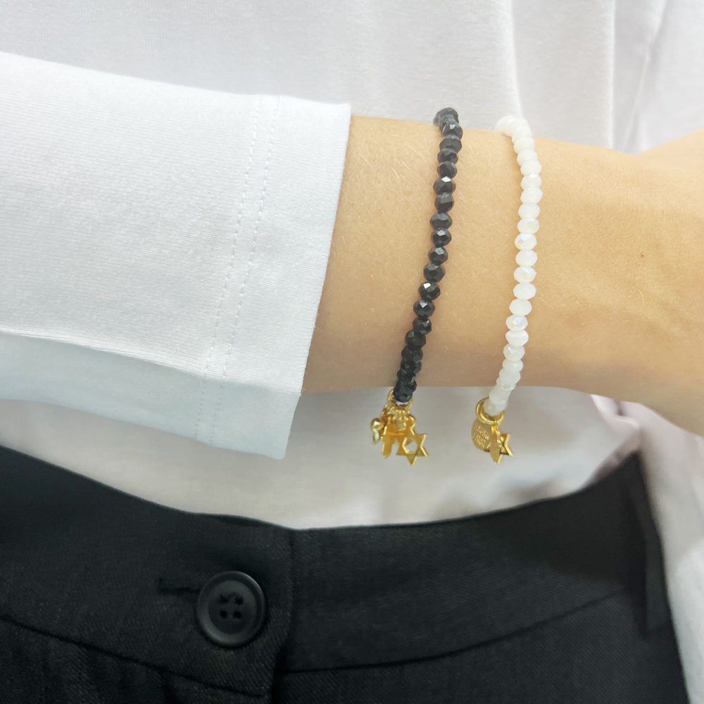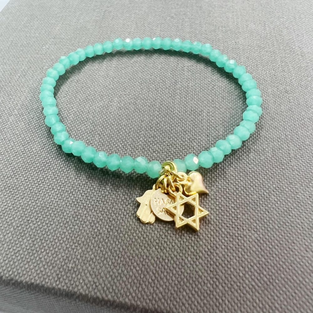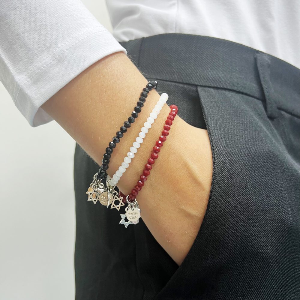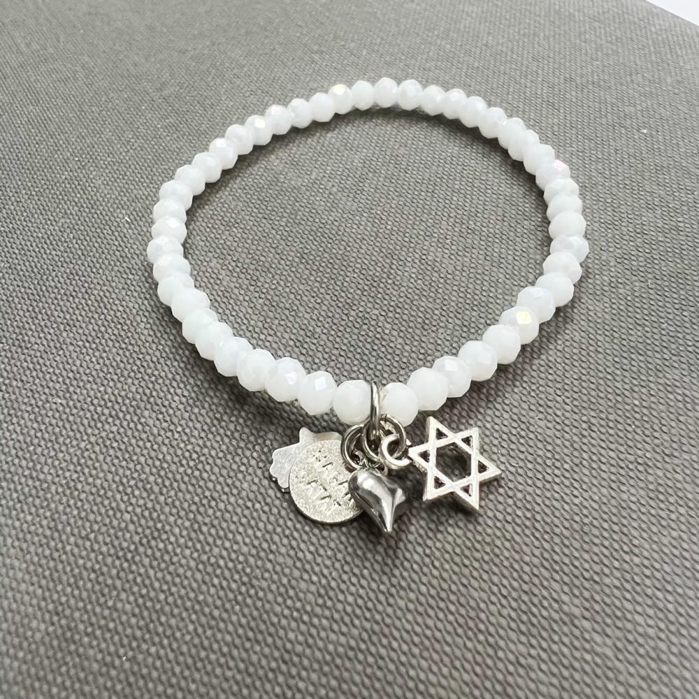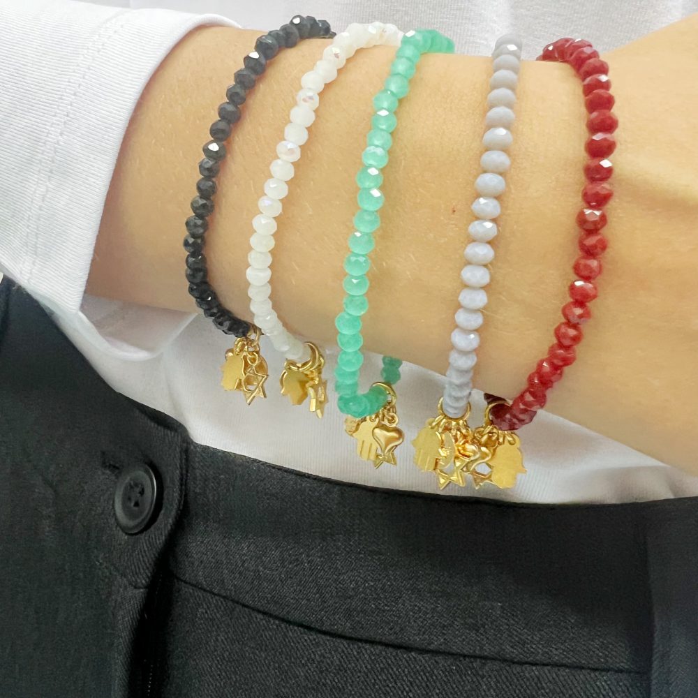 הצמיד עשוי חרוזי קריסטל עם נצנוץ עדין משולבים עם תליוני צ’ארמס מקסימים מלאים באהבה, תקווה ומזל.