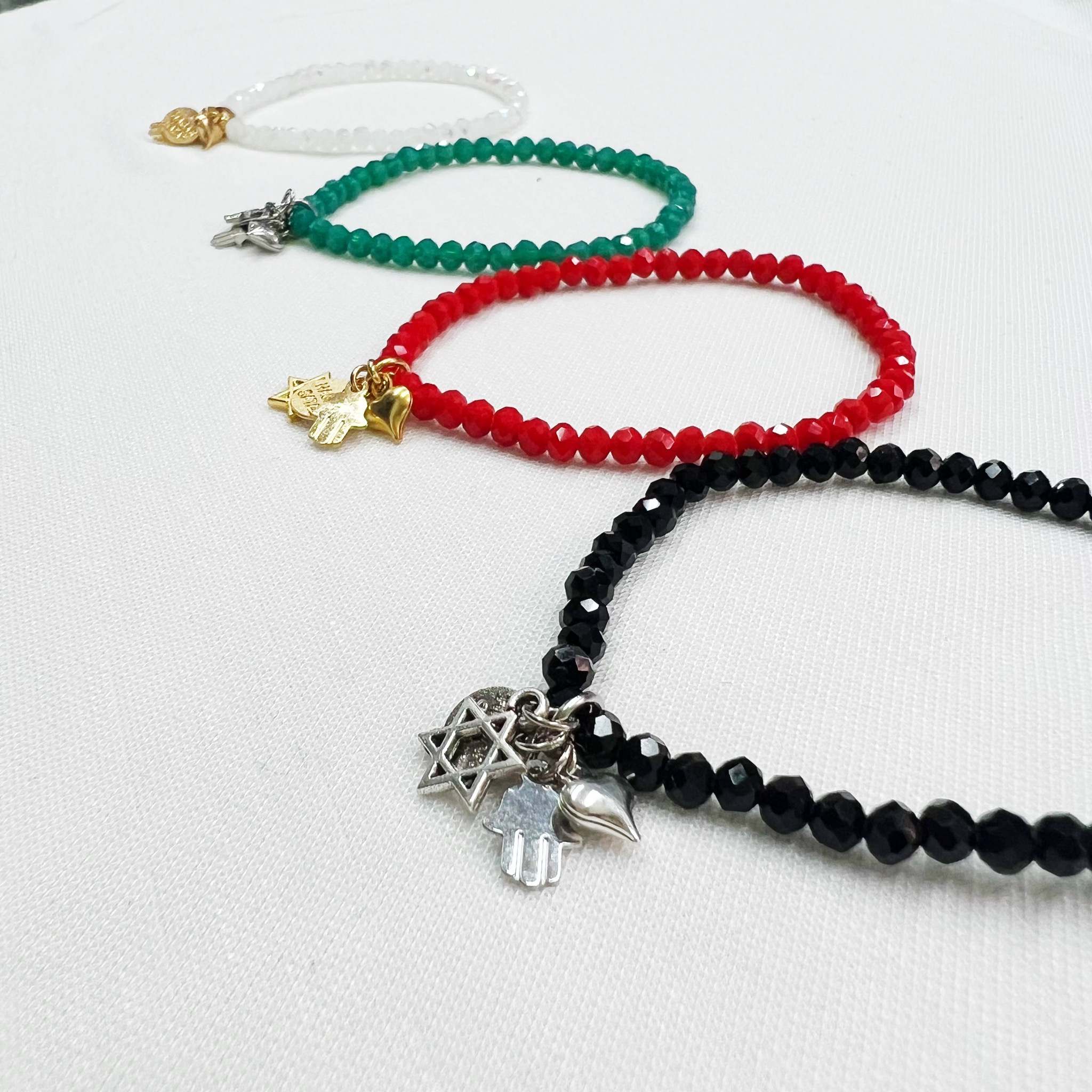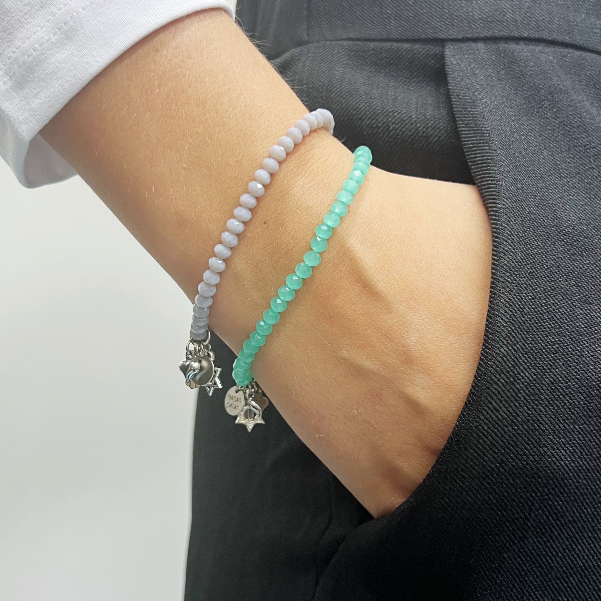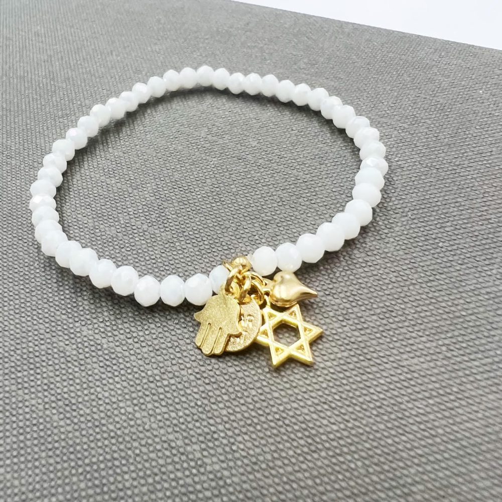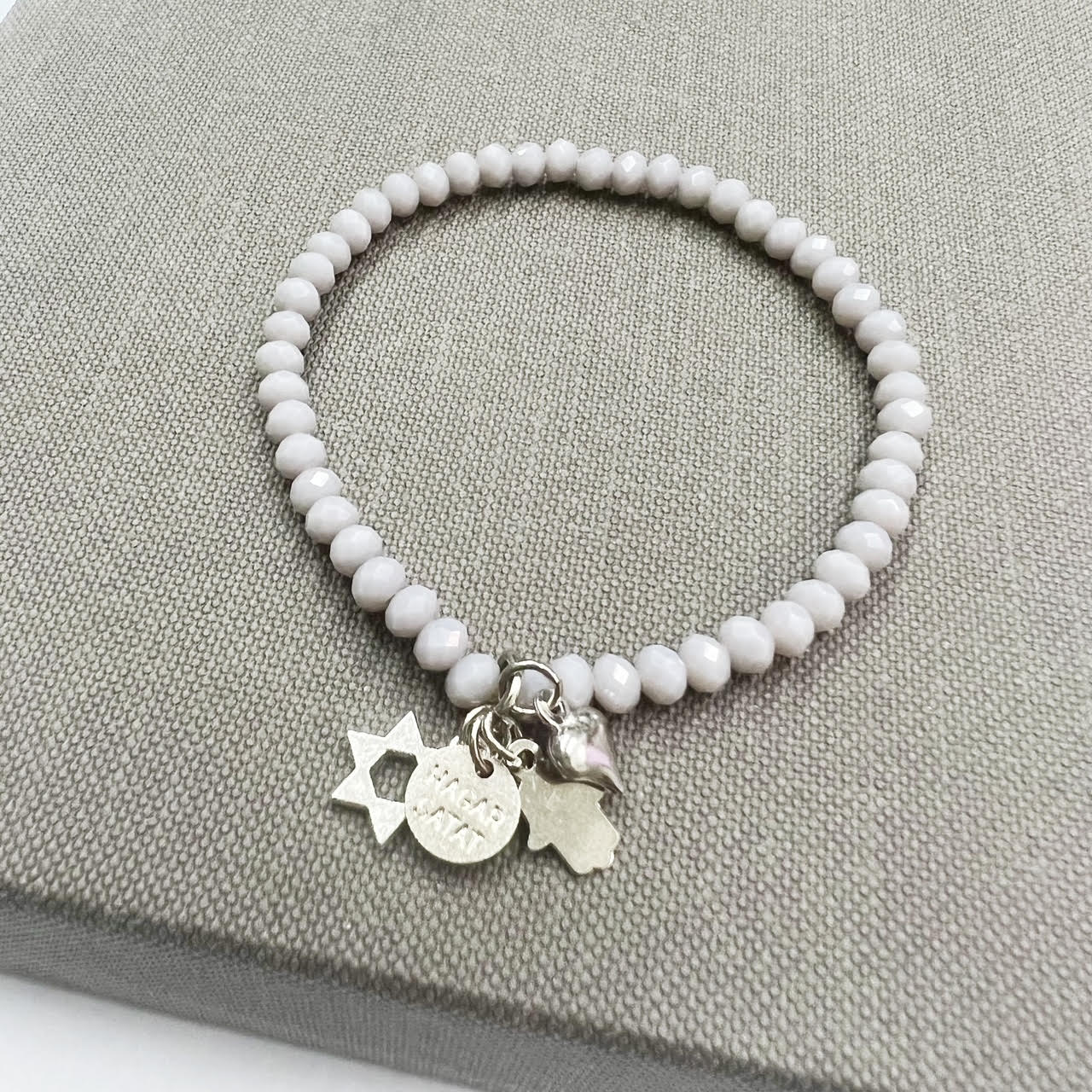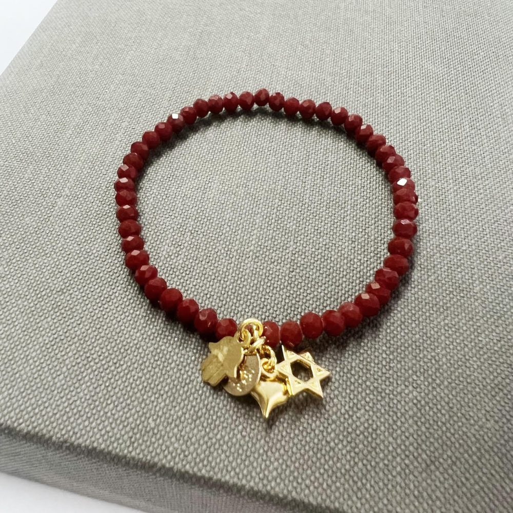 הצמיד עשוי חרוזי קריסטל עם נצנוץ עדין משולבים עם תליוני צ’ארמס מקסימים מלאים באהבה, תקווה ומזל.