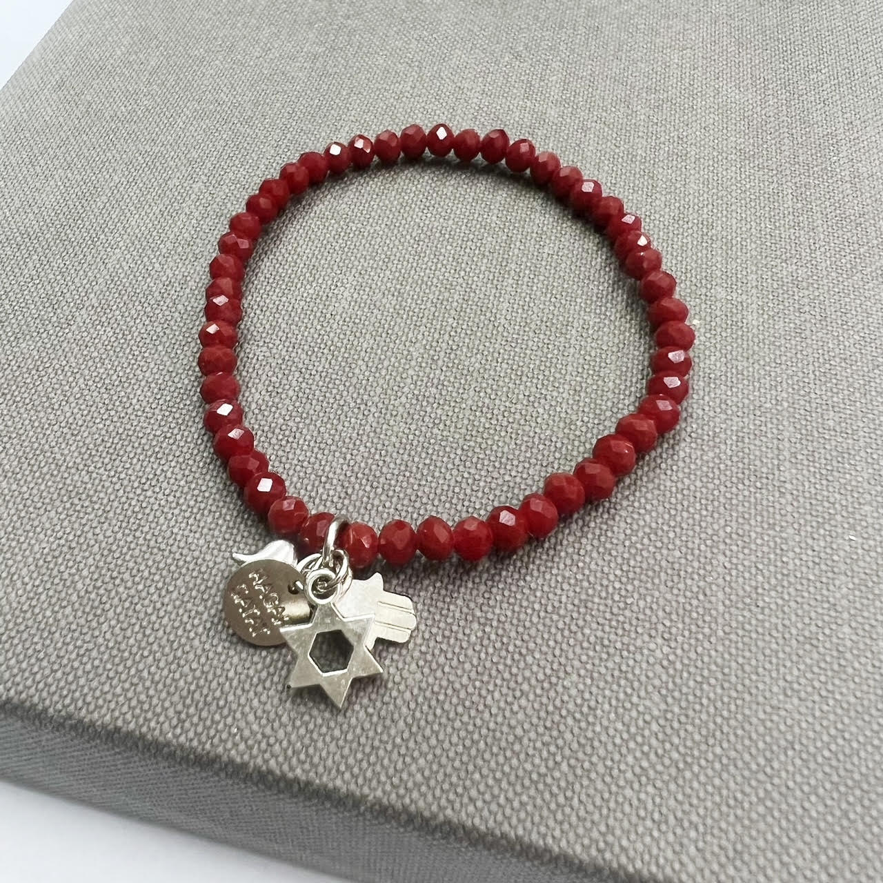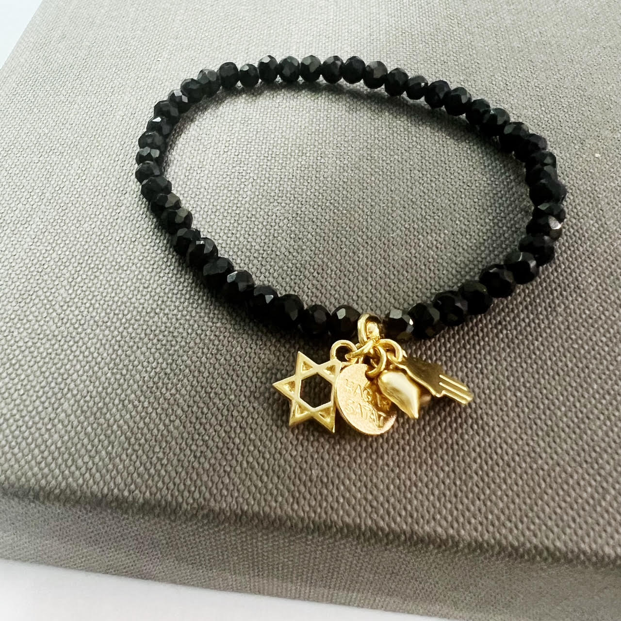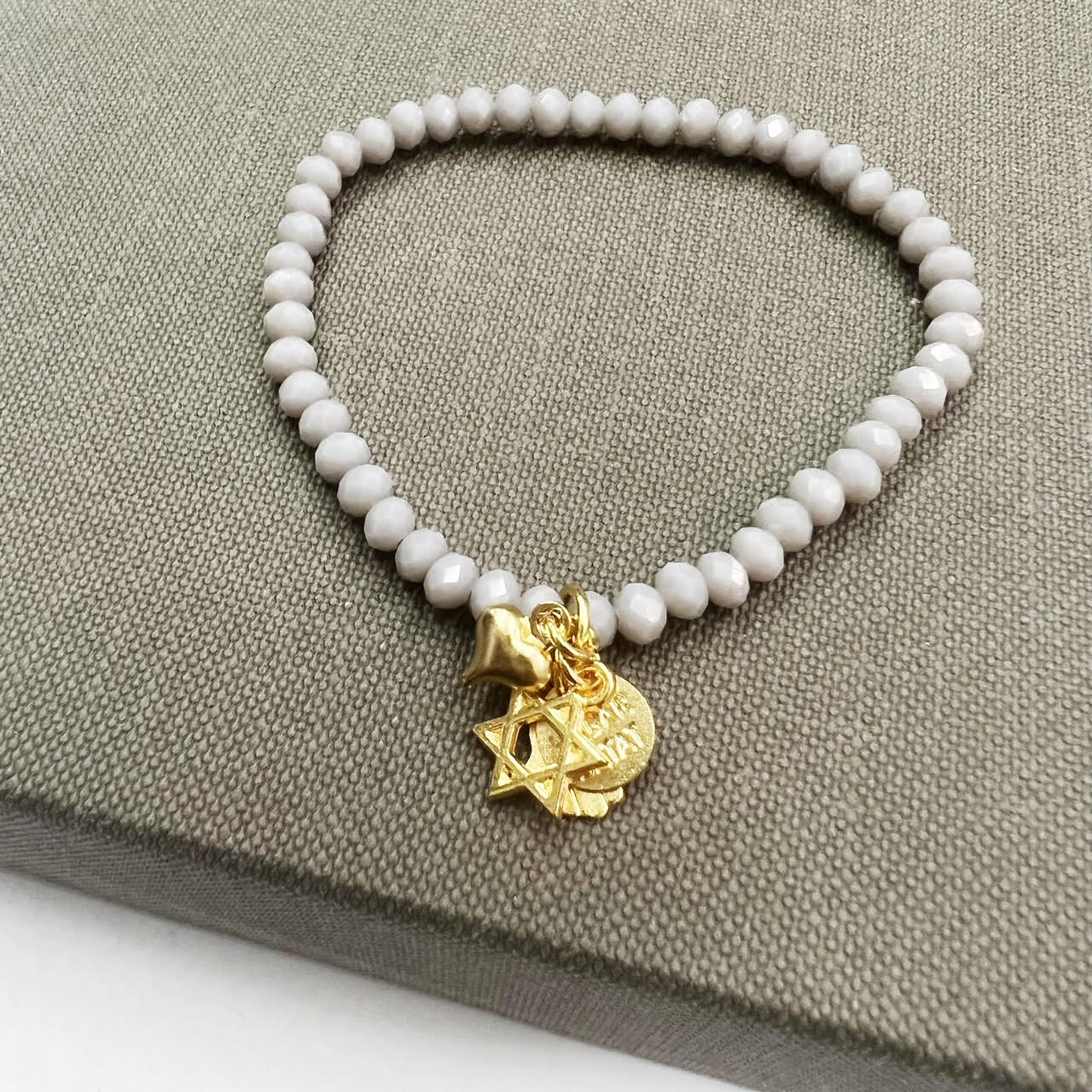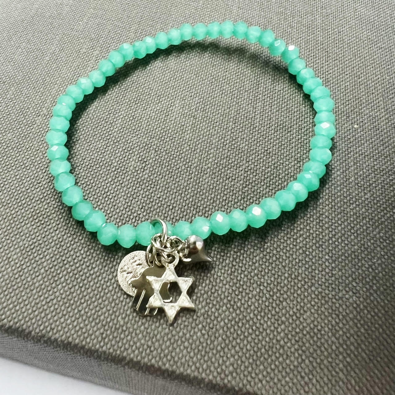 הצמיד עשוי חרוזי קריסטל עם נצנוץ עדין משולבים עם תליוני צ’ארמס מקסימים מלאים באהבה, תקווה ומזל.