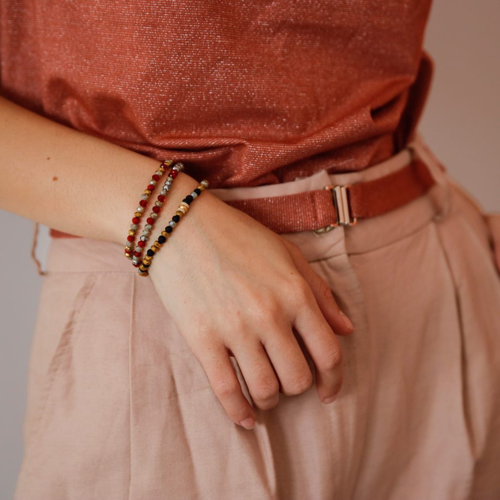 צמיד משגע ומלא בסטייל עשוי חרוזי קריסטל בגוונים שונים ( לבחירה שלושה שילובים: אדום, ירוק,שחור), מושחלים על חוט סיליקון עמיד ואיכותי.