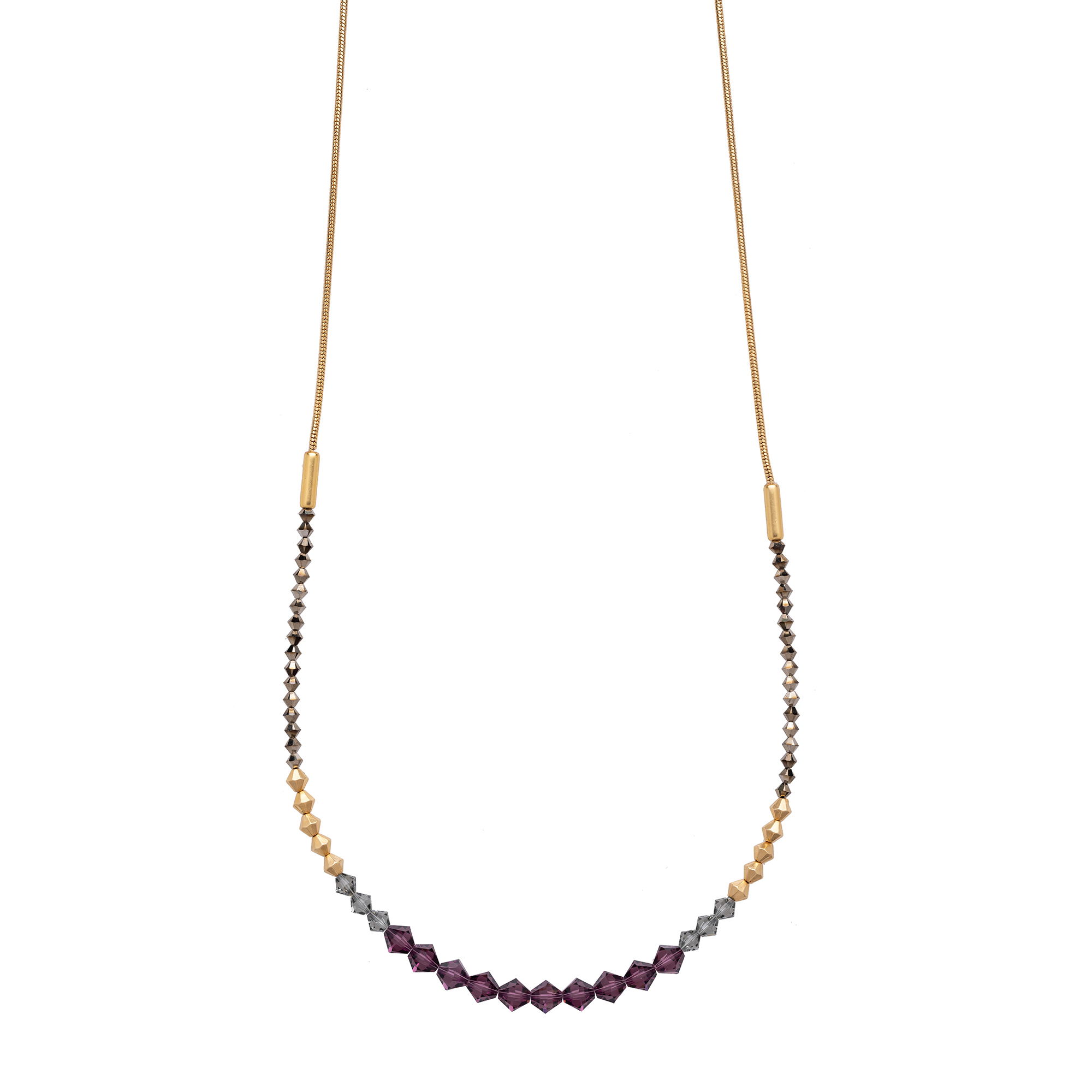 השרשרת עשויה משרשרת דקה משולבת חרוזי סברובסקי עדינות וחרוזים המצופים זהב 24 קראט מאט.