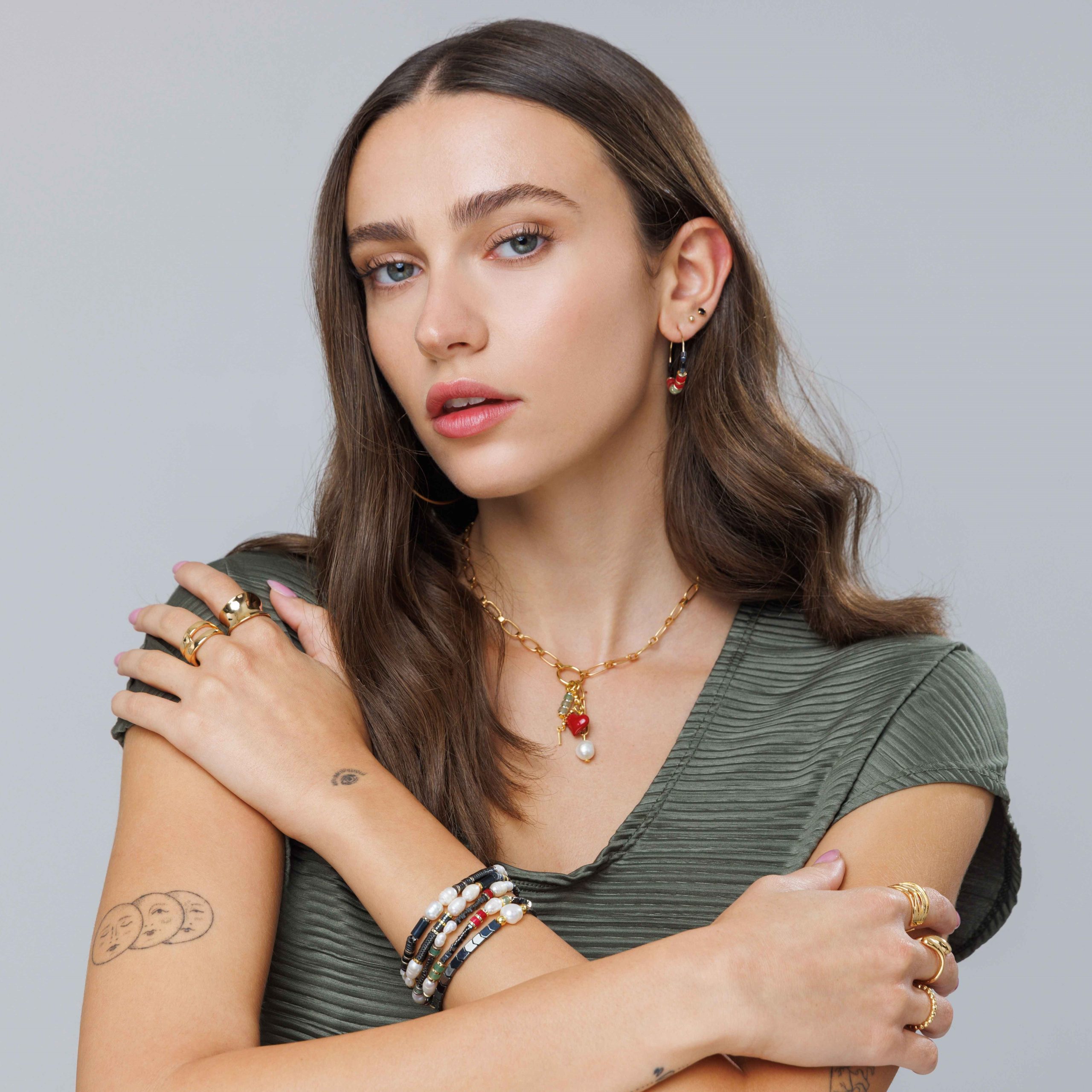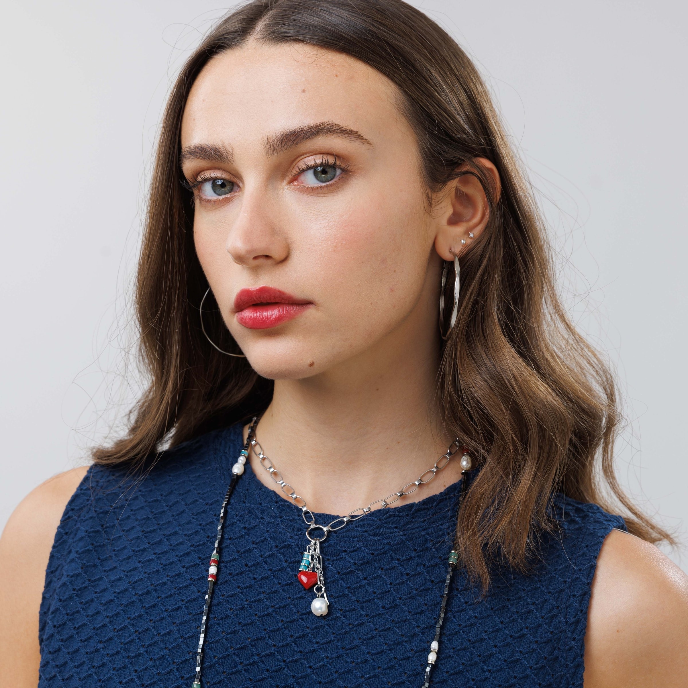 לב אדום, פנינה טבעית, אבני טורקיז ושרשרת מסוגננת