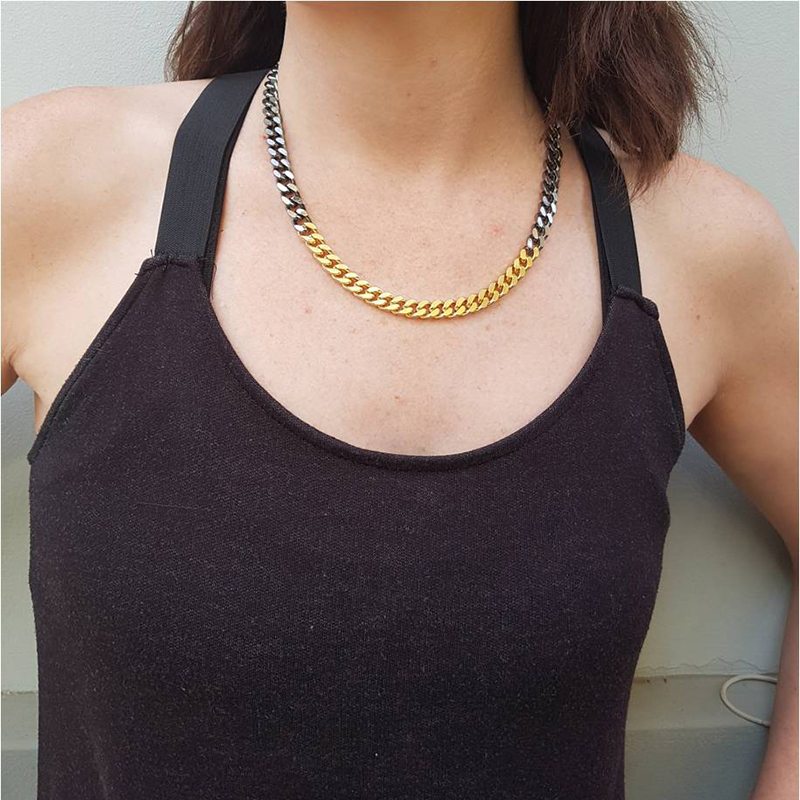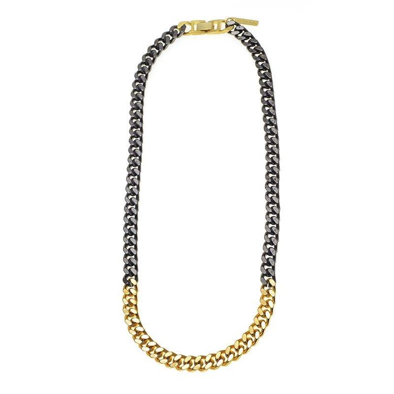 שרשרת גורמט, מצופה זהב 24 קראט בגוון מט או מצופה כסף, משולבת עם שרשרת גורמט בציפוי שחור.