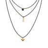 השרשרת עשויה שלוש שרשראות עדינות בציפוי שחור בשלושה אורכים שונים ליצירת מראה שכבות, בכל שכבה תלוי אלמנט: אבן סברובסקי שחורה, תליון מלבן מתכת משובץ אבני קריסטל ותליון לב. השרשרת בציפוי זהב 24 קראט או בציפוי כסוף.