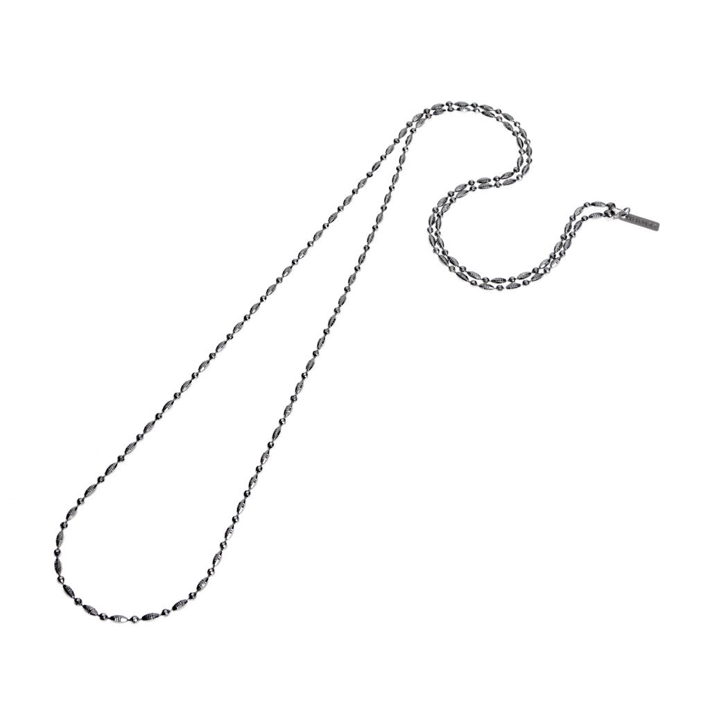 שרשרת עשויה חרוזי מתכת מפוסטים היוצרים נצנוץ וברק אלגנטי ובעל שיק.