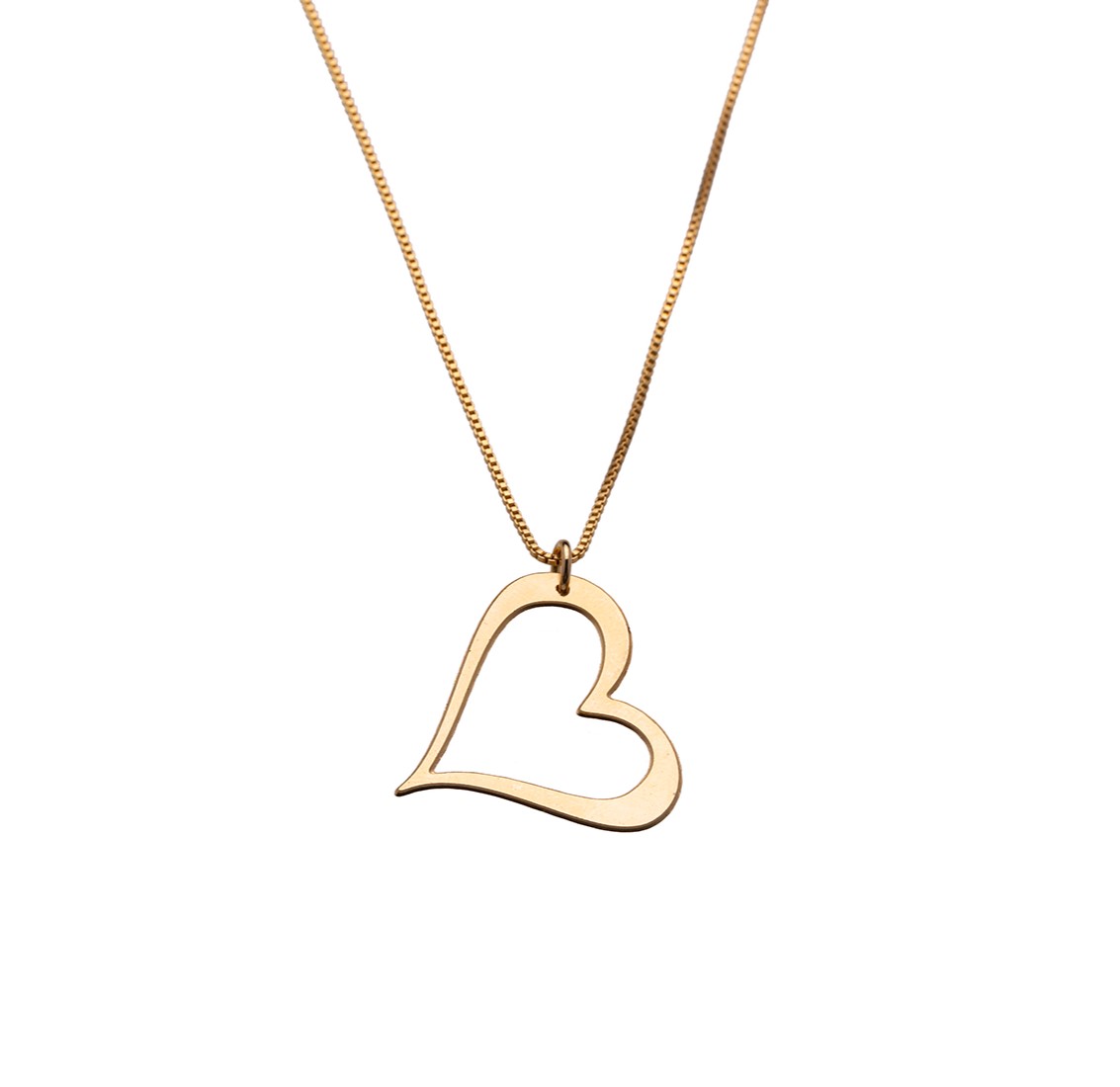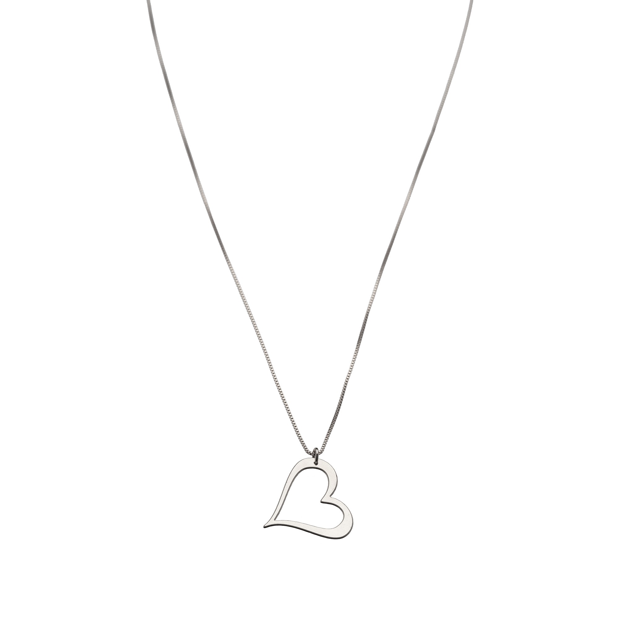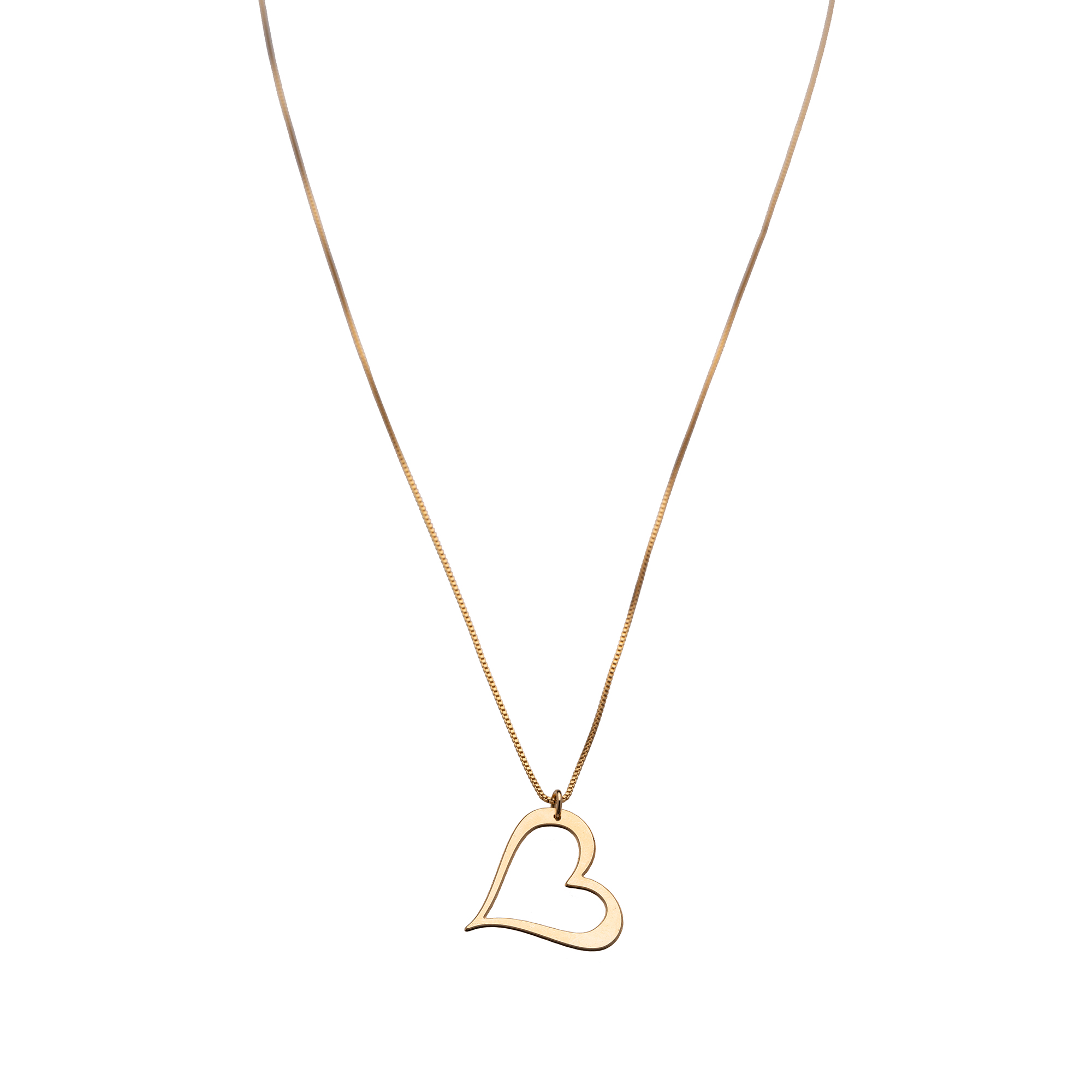 שרשרת ארוכה בוקס באורך של 72 ס”מ אליה מחובר תליון בגודל של כ 3 ס”מ בצורת לב רחב.