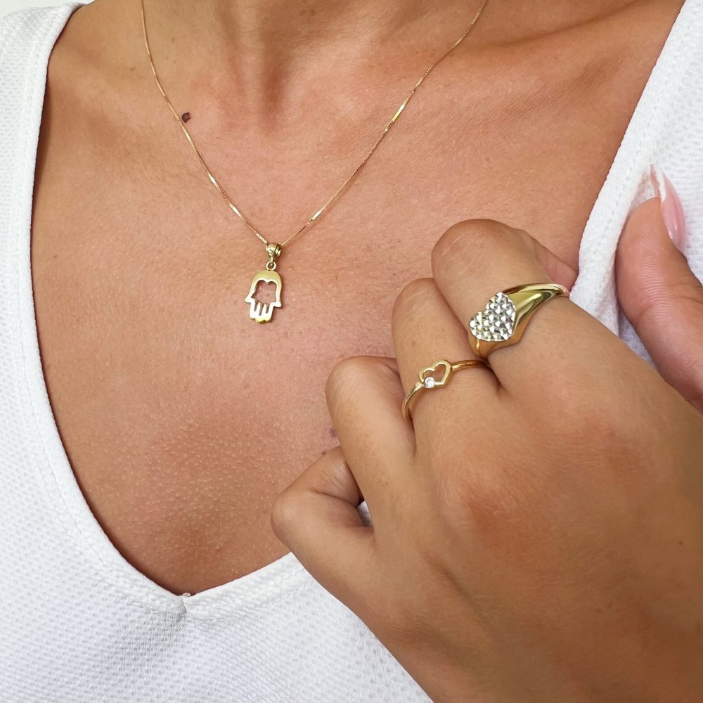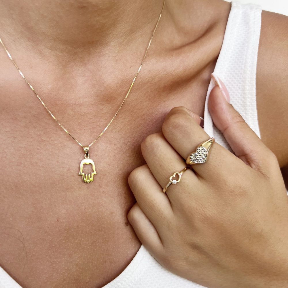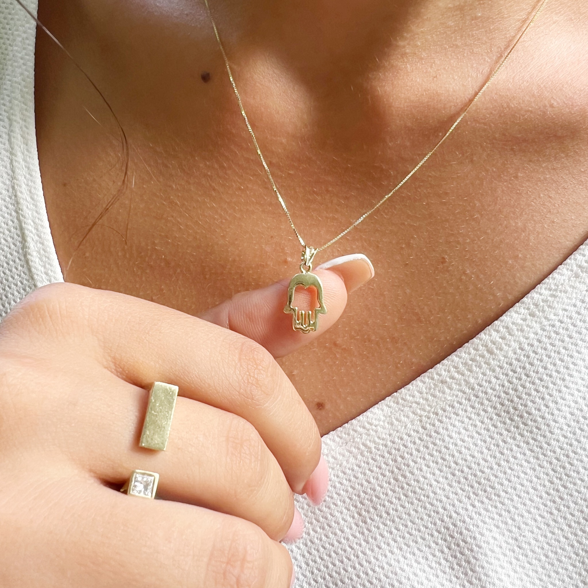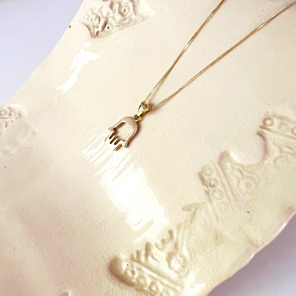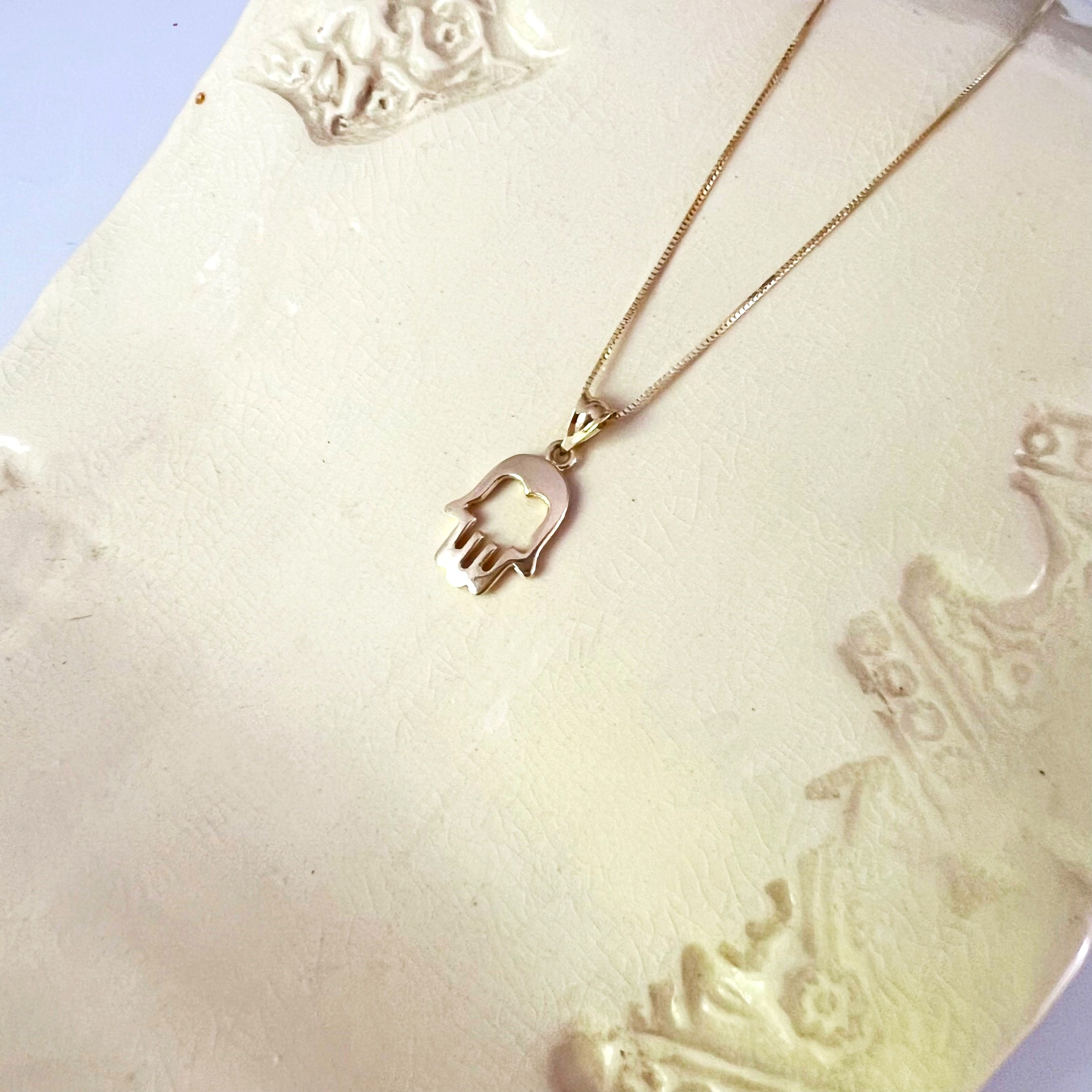 השרשרת עצמה שרשרת בוקס עדינה עם נצנוץ אליה מחובר תליון חמסה מיוחד ויפה בגודל של כ1 ס”מ, מחובר עם מחבר אלגנטי מקסים.