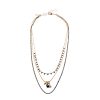שרשרת המורכבת משלוש שכבות: שכבה ראשונה שרשרת קצרה משולבת עם אבני שחורות קטנות, שרשרת אמצעים עם תליונים ושרשרת תחתונה של גורמט עדינה בצבע שחור