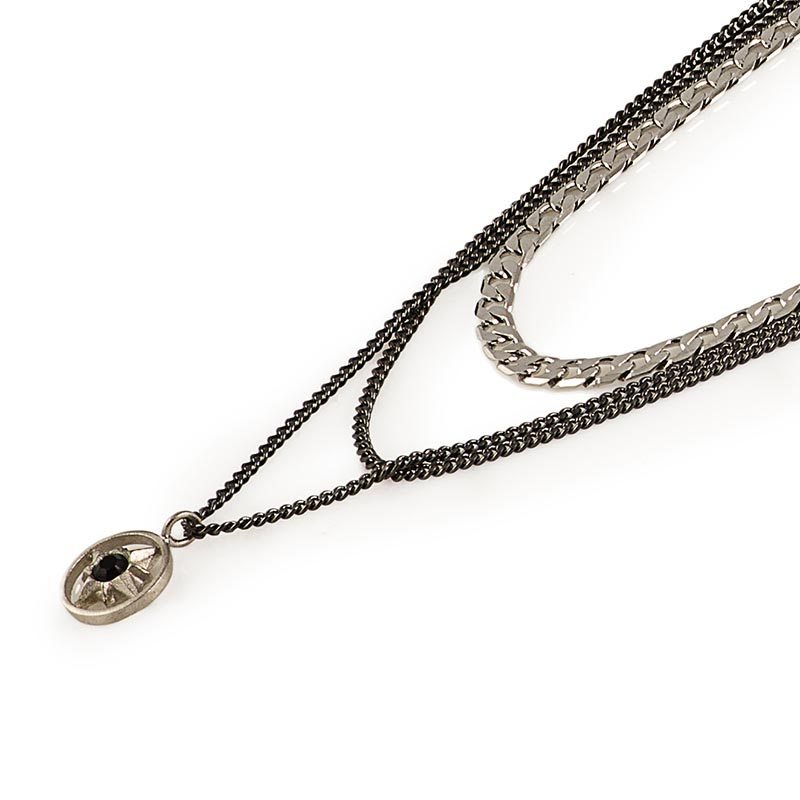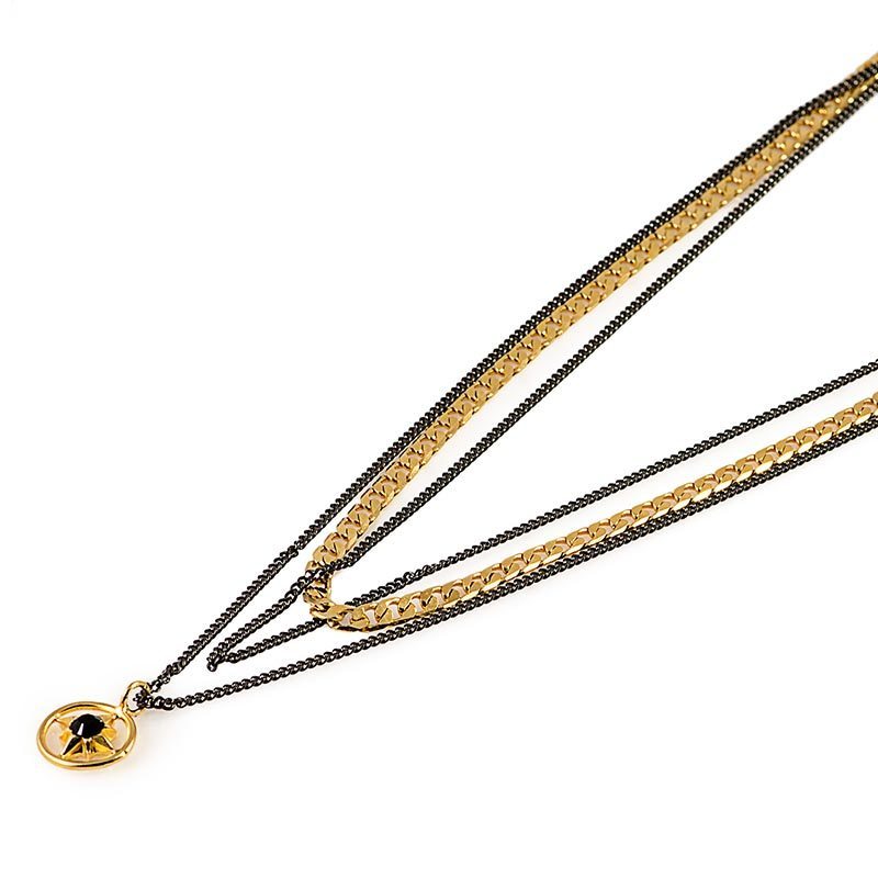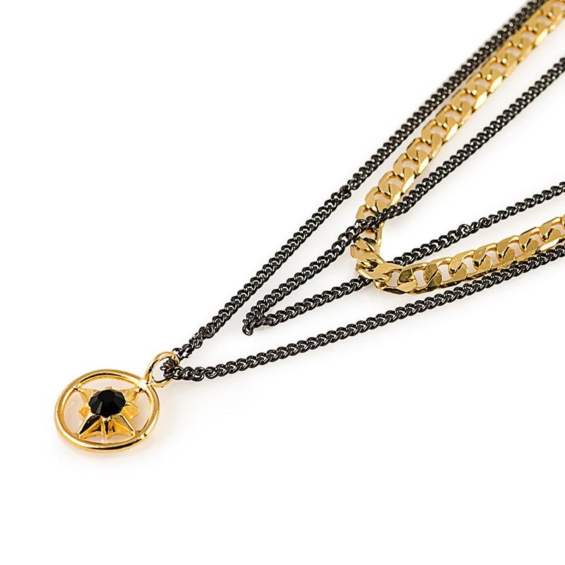 מקבץ שרשראות גורמט עדינות בציפוי שחור וציפוי זהב 24 קראט או בציפוי כסוף משולבות ביחד, בקצה תליון כוכב בציפוי זהב 24 קראט או בציפוי כסוף משובץ באבן סברובסקי שחורה