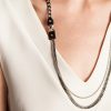 שלוש שרשראות עדינות בציפוי זהב 24 קראט בגוון מט וציפוי שחור או בציפוי כסוף בגוון מט וציפוי שחור, מחוברות לעור ותליון כוכב משובץ באבן סברובסקי עדינה בצבע שחור.
