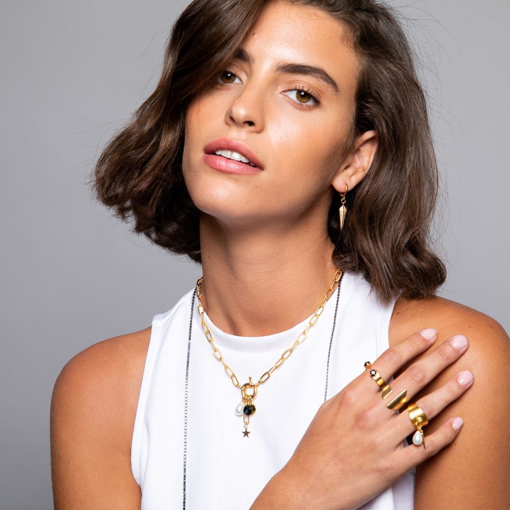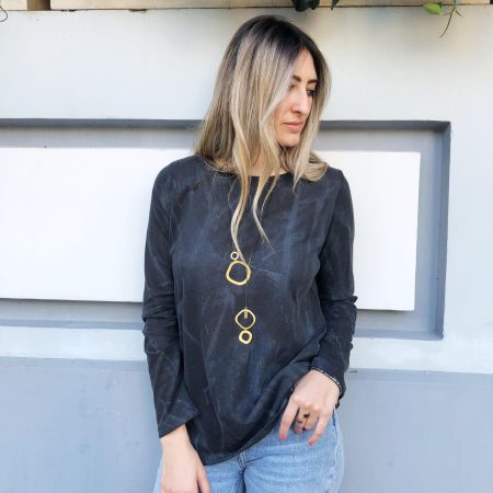 אורך השרשרת הוא 43 ס”מ בציפוי בציפוי זהב 24 קראט או בציפוי כסוף.