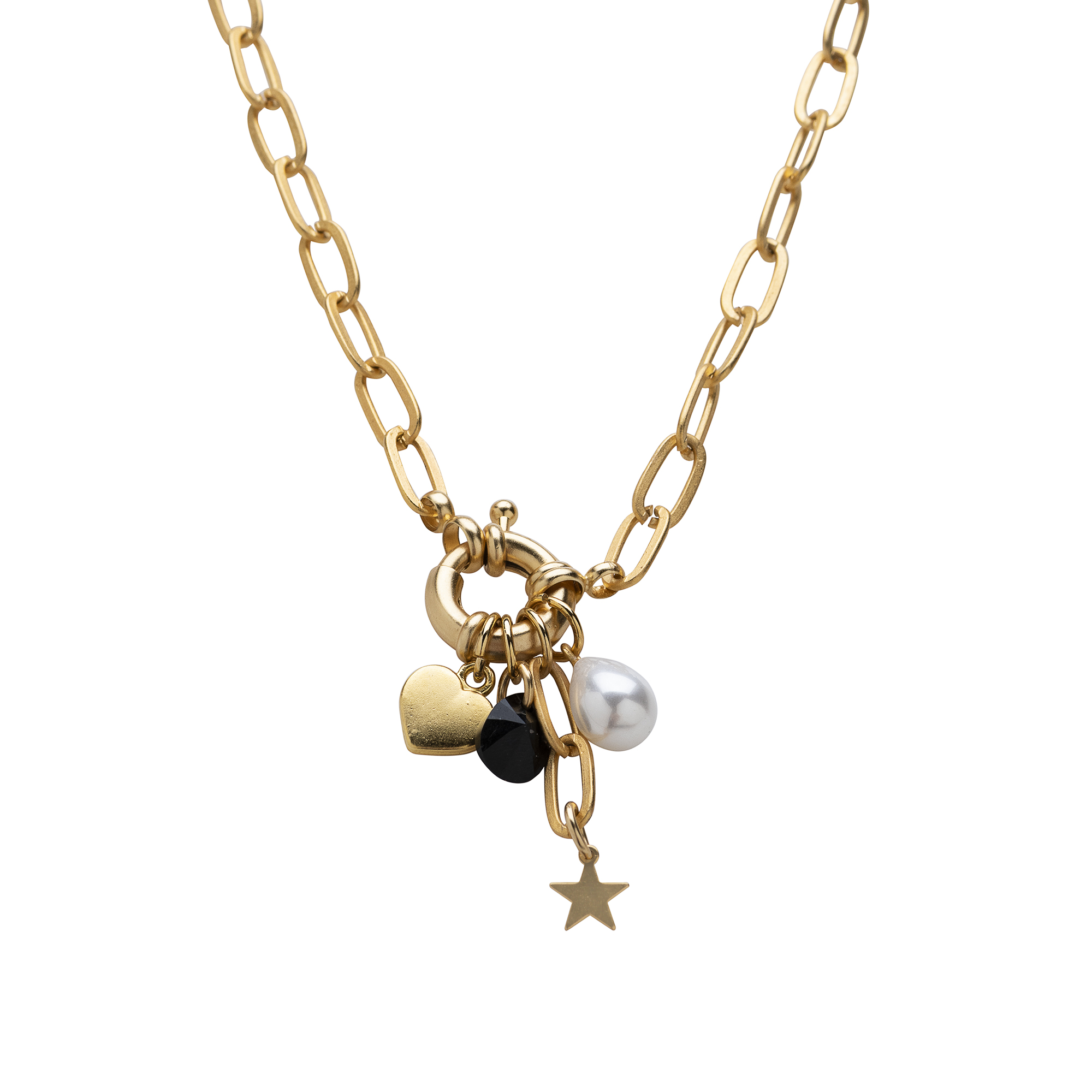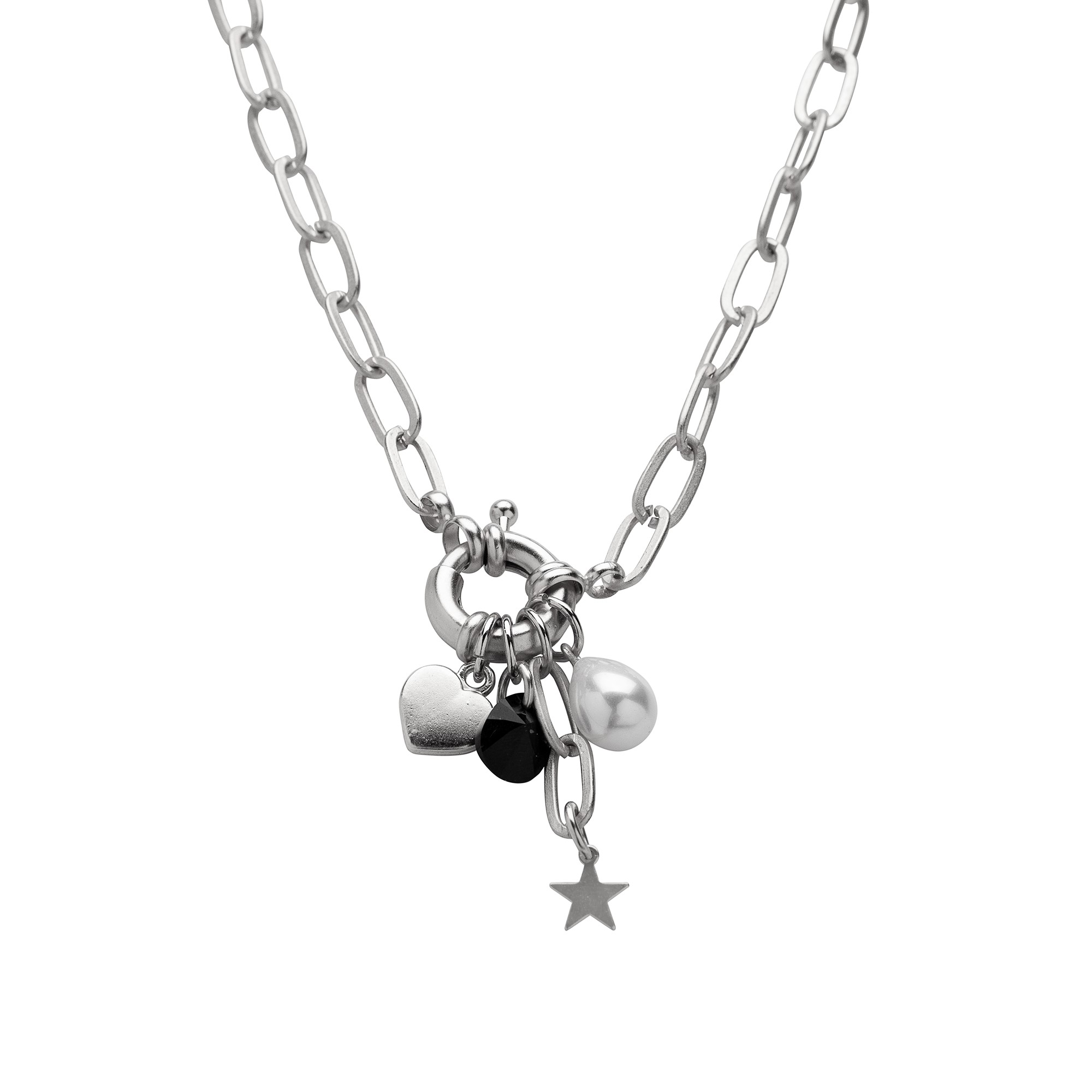 לב משגע, כוכב מנצנץ , אבן סוורובסקי שחורה ופנינה אמיתית.