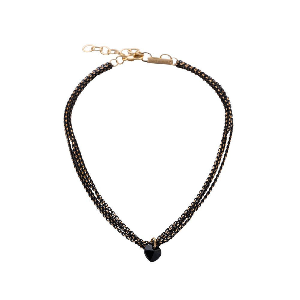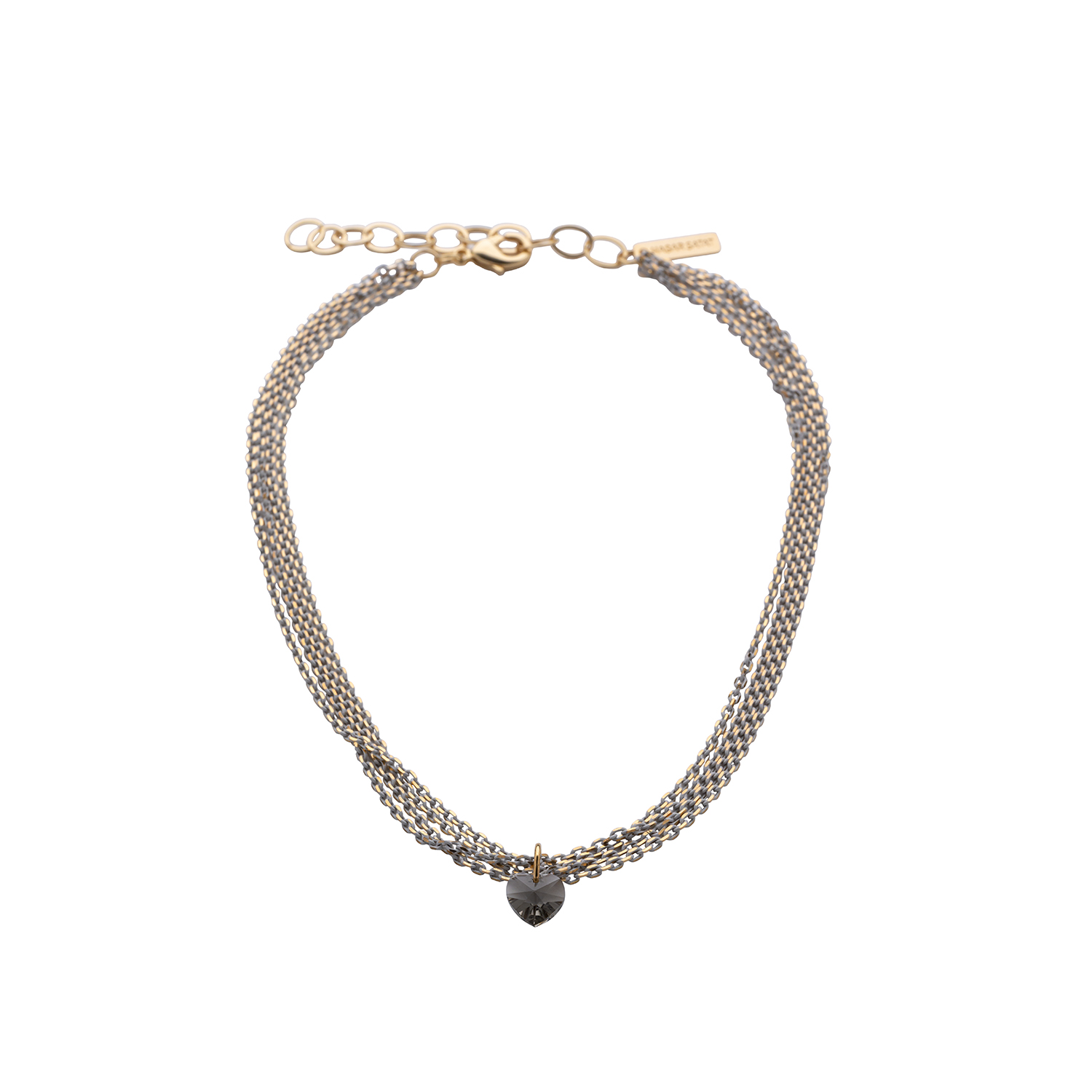 שרשראות דקות מחוברות יחדיו משולבות עם תליון לב סברובסקי למראה שיקי ומלא בסטייל.
