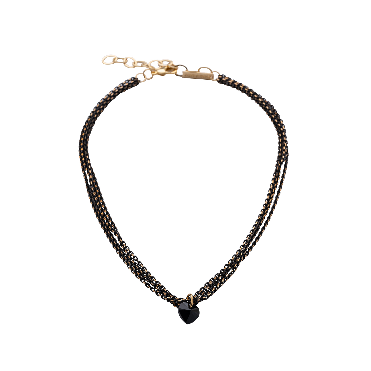 השרשרת עשויה מציפוי זהב 24 קראט עם אבן סברובסקי שחורה / אפורה.